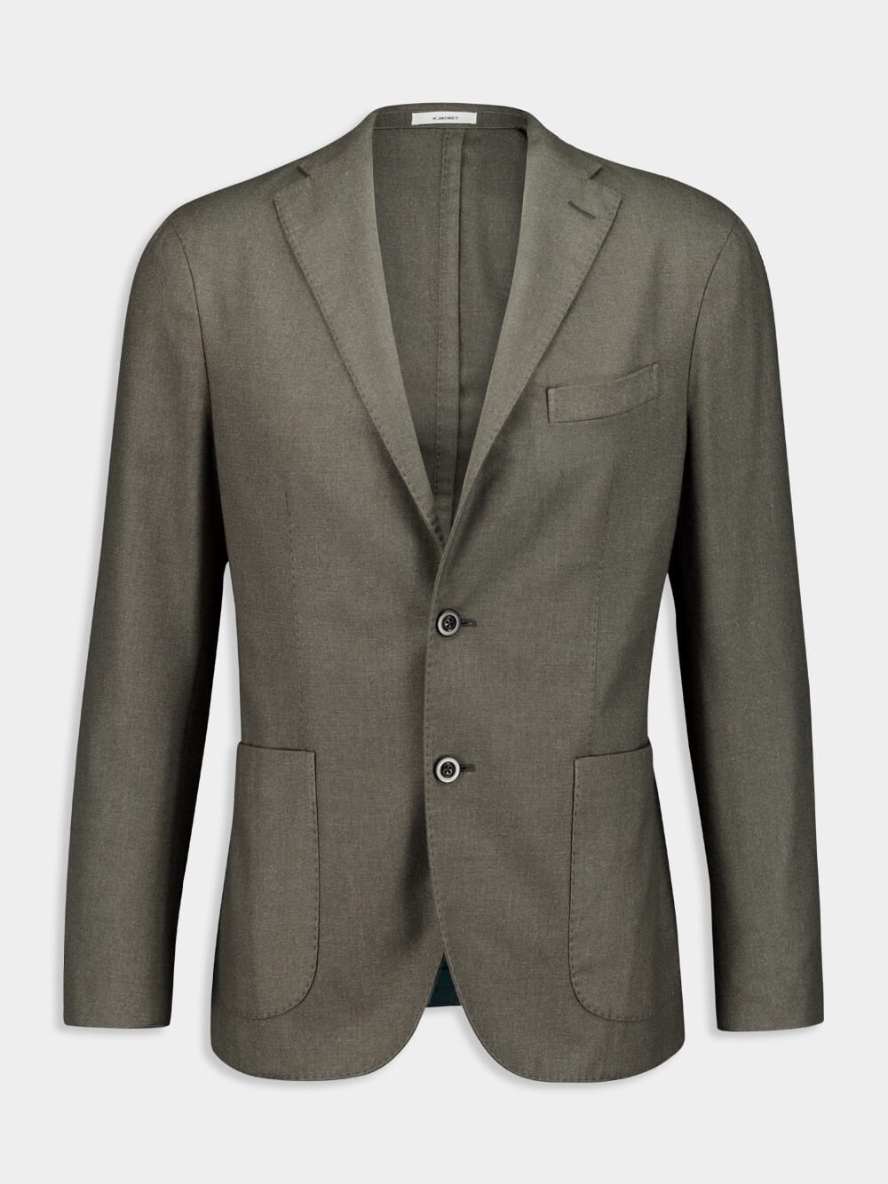 This elegant single-breasted blazer is crafted from luxurious cashmere in a refined green shade. It features a front button fastening, classic notched lapels, and long sleeves with buttoned cuffs. A chest welt pocket and two front patch pockets add functional sophistication, while the English rear vents ensure a tailored fit. Ideal for refined settings, this blazer exudes timeless style.