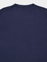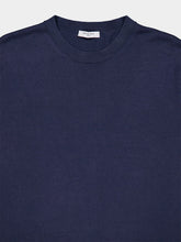 Indulge in the luxury of this navy t-shirt, a sophisticated blend of cotton and silk. The fine fabric provides a smooth texture, while the classic crew neck and short sleeves maintain a timeless and versatile style for everyday elegance.