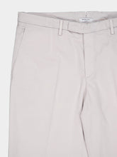These ivory chino trousers offer a flawless blend of comfort and sophistication. The stretch cotton material ensures a regular fit that moves with you, while the slanted side pockets and welt back pockets add functional elegance to this casual staple.