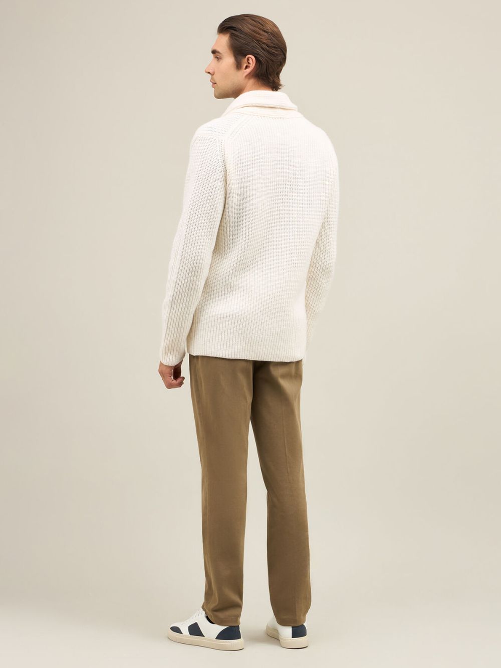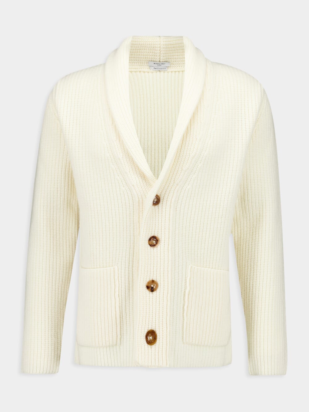 This exquisite cardigan, crafted from a luxurious blend of wool and cashmere, features an elegant English rib knit that adds a rich, textured finish. The cardigan is designed with a 4-button closure, offering both style and practicality. Two patch pockets enhance its functionality while contributing to a refined yet casual aesthetic. Perfect for layering over shirts or under jackets, this versatile piece effortlessly elevates your everyday wardrobe with its sophisticated charm. Ideal for cooler seasons, it provides warmth and comfort without compromising on style.