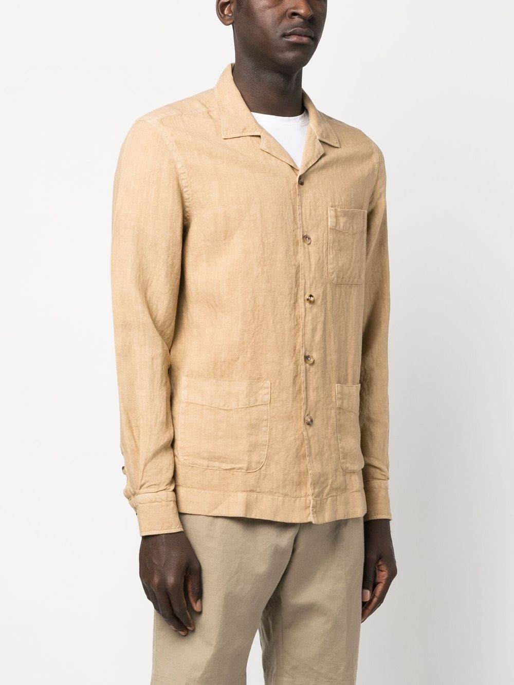 Boglioli long sleeves linen shirt with chest patch pocket.
