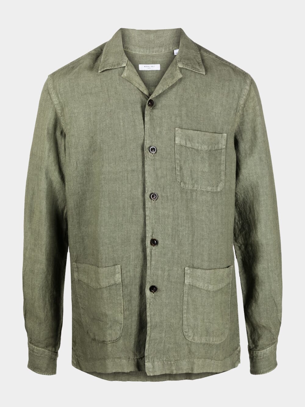 Boglioli long sleeves linen shirt with chest patch pocket.