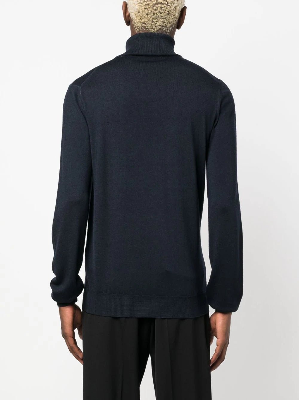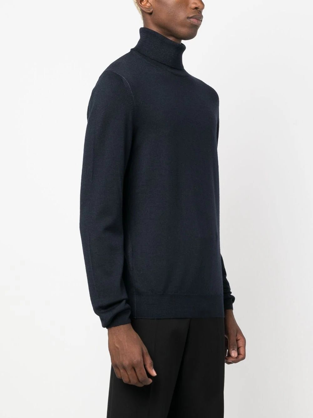 Virgin Wool Jumper, a timeless masterpiece that combines the unparalleled luxury of virgin wool with meticulous knitted construction. Embrace the allure of the night with its deep, rich hue that evokes elegance. The indulgent roll neck and snug ribbed cuffs and hem offer warmth and comfort, while the long sleeves ensure a cozy fit.