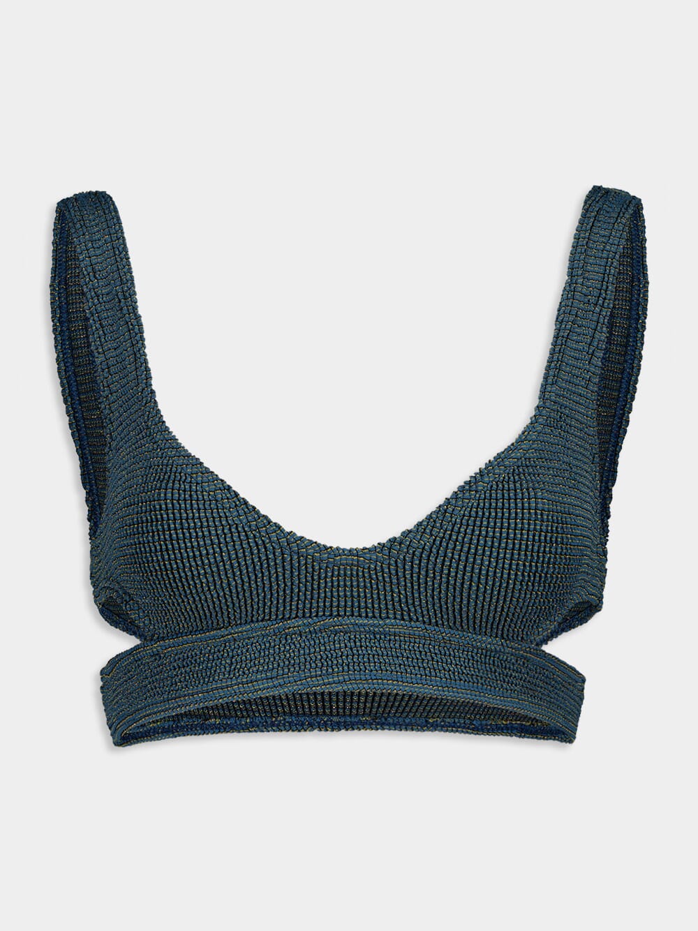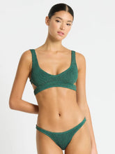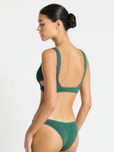 Immerse yourself in coastal chic with the Vista Brief in Bottle Green Lurex. Its hipster cut provides versatile coverage, from moderate to cheeky, adaptable to be worn low or high on the hips. Crafted from Authentic Crinkle™ fabric, this piece combines comfort with a glittering allure, making it a beach essential.
