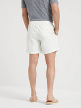 These crisp white swim shorts are a summer staple, perfect for both globe-trotting adventures and leisurely days. Made from a smooth, semi-matte lightweight nylon, they provide both comfort and a sleek aesthetic. Features include an elastic waistband with drawstring, slanted front pockets, and a back pocket with hook-and-loop closure. The Solomeo logo adds an exclusive touch, and they come with a handy swimsuit bag.