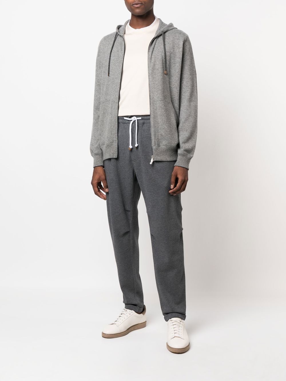 Brunello Cucinelli dark grey cotton blend drawstring track trousers