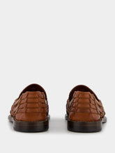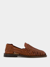 Elevate your casual summer attire with these exquisitely crafted woven calfskin sandals. Drawing inspiration from traditional loafers, they feature a lightweight, breathable structure ideal for warmer days. The soft strips of leather are intricately woven, showcasing skilled craftsmanship. Designed with a leather outsole and rubber bottom for ultimate comfort.