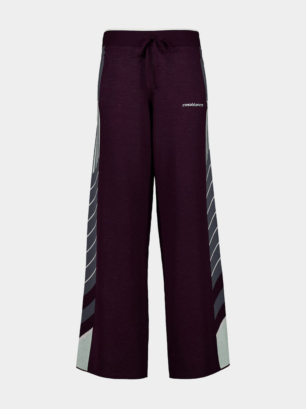 Crafted from 100% merino wool, this burgundy long-sleeve polo shirt by Casablanca showcases a refined take on athletic elegance. Diagonal sport-inspired stripes lend dynamic visual interest, while the quarter zip closure with the signature diamond logo tab enhances its distinctive character. A ribbed collar and contrast trims at the cuffs and collar provide a polished finish. The slim fit ensures a sharp silhouette for transitional seasonal wear.