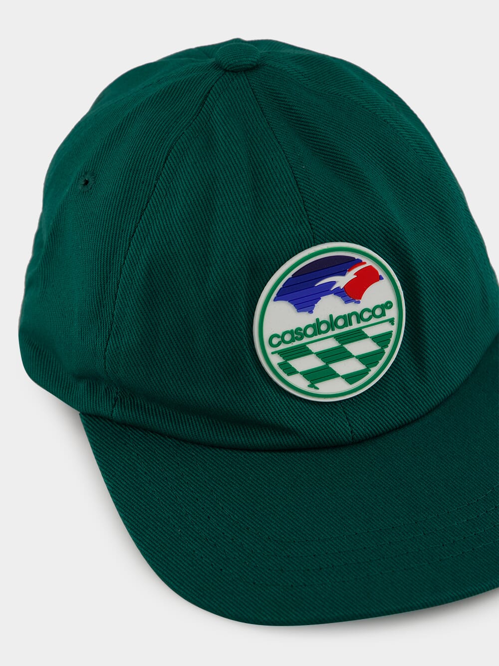 The Green Checkered Court Cap by Casablanca blends sporty elegance with retro flair. Featuring a structured silhouette and signature patch detailing, this cap stands out with its dynamic checkered pattern in green tones. Ideal for elevating casual ensembles or adding a touch of luxury to sporty looks. Designed for the modern man with a refined yet playful style.