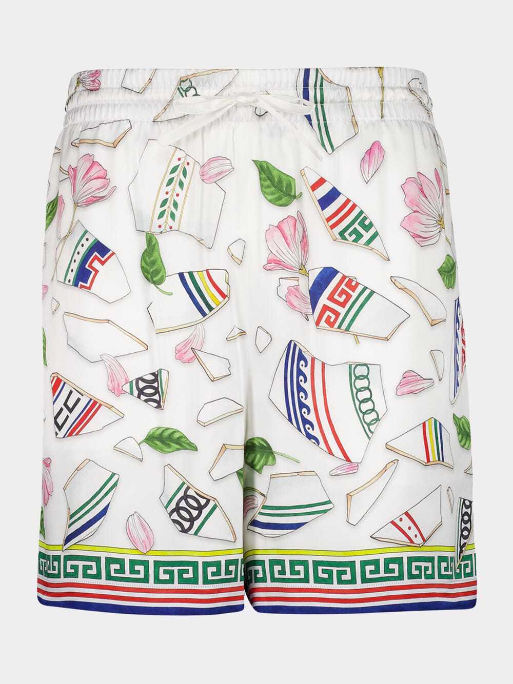 The Le Vase Brisé Silk Short Sleeve Shirt is a luxurious short-sleeve design crafted from 100% silk satin. Featuring the house's seasonal multicolour artwork inspired by fragmented vase pieces, the shirt showcases intricate details such as a Cuban collar and Greek key-inspired patterns on the cuffs, collar, and hem. Finished with signature corozo buttons engraved with an interlocking CC logo, this shirt is an elegant statement piece. Made in Italy, it fits true to size and is perfect for refined summer styling.