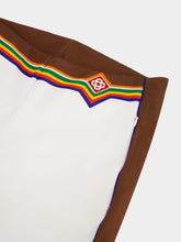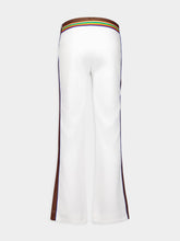 Logo-Embroidered Track Pants, featuring chic stripe detailing and an embroidered logo on the front. The mid-rise design and elasticated waistband offer both comfort and style, while two side zip-fastening pockets add a practical touch. Step out in confidence with the straight-leg silhouette, blending contemporary fashion with effortless versatility.