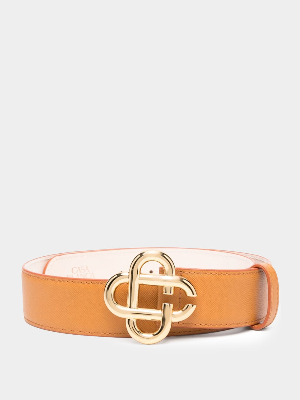 Casablanca CC logo buckle belt in leather and gold tone hardware.