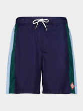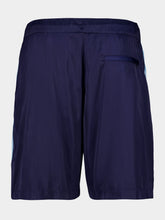 These track shorts combine comfort and style with their lightweight nylon construction and pleated design. Accented with navy and laurel green stripes, they offer a sporty aesthetic perfect for casual or active days. A drawstring waist ensures a customizable fit, while the Casablanca logo adds a refined touch.