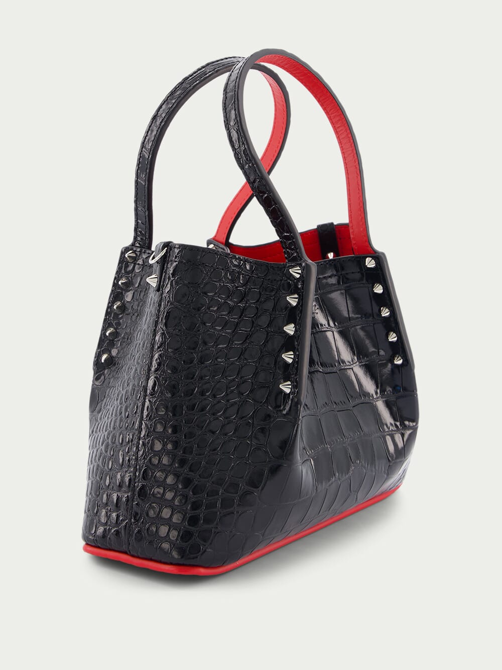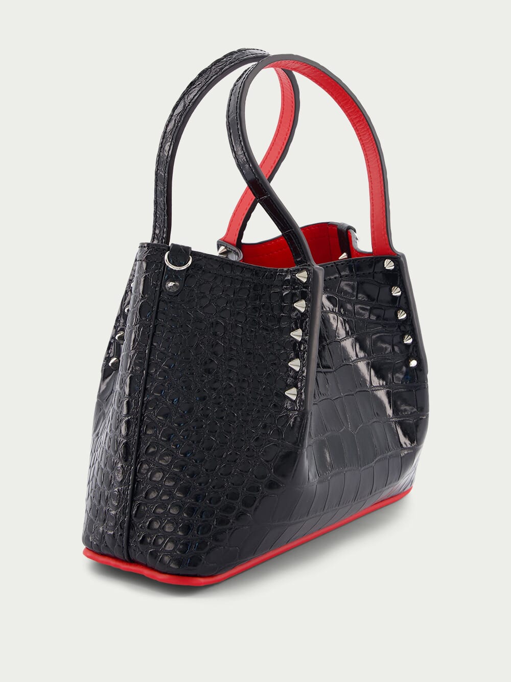 Christian Louboutin Cabarock mini leather handbag crafted in luxurious calf leather, this handbag is a true testament to Christian Louboutin's commitment to quality and elegance. The mini size of this handbag is perfect for those who prefer a sleek and streamlined accessory. Despite its compact nature, it packs a powerful punch with its edgy metallic spikes, adding a touch of rebellion to its overall design. Featuring two handles and a removable shoulder strap, this handbag offers versatile carrying options to suit your needs and style preferences.