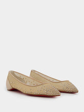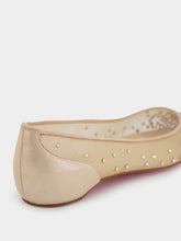 Christian Louboutin Follies Strass beige mesh ballerina with a gradient of strass with iridescent reflections.