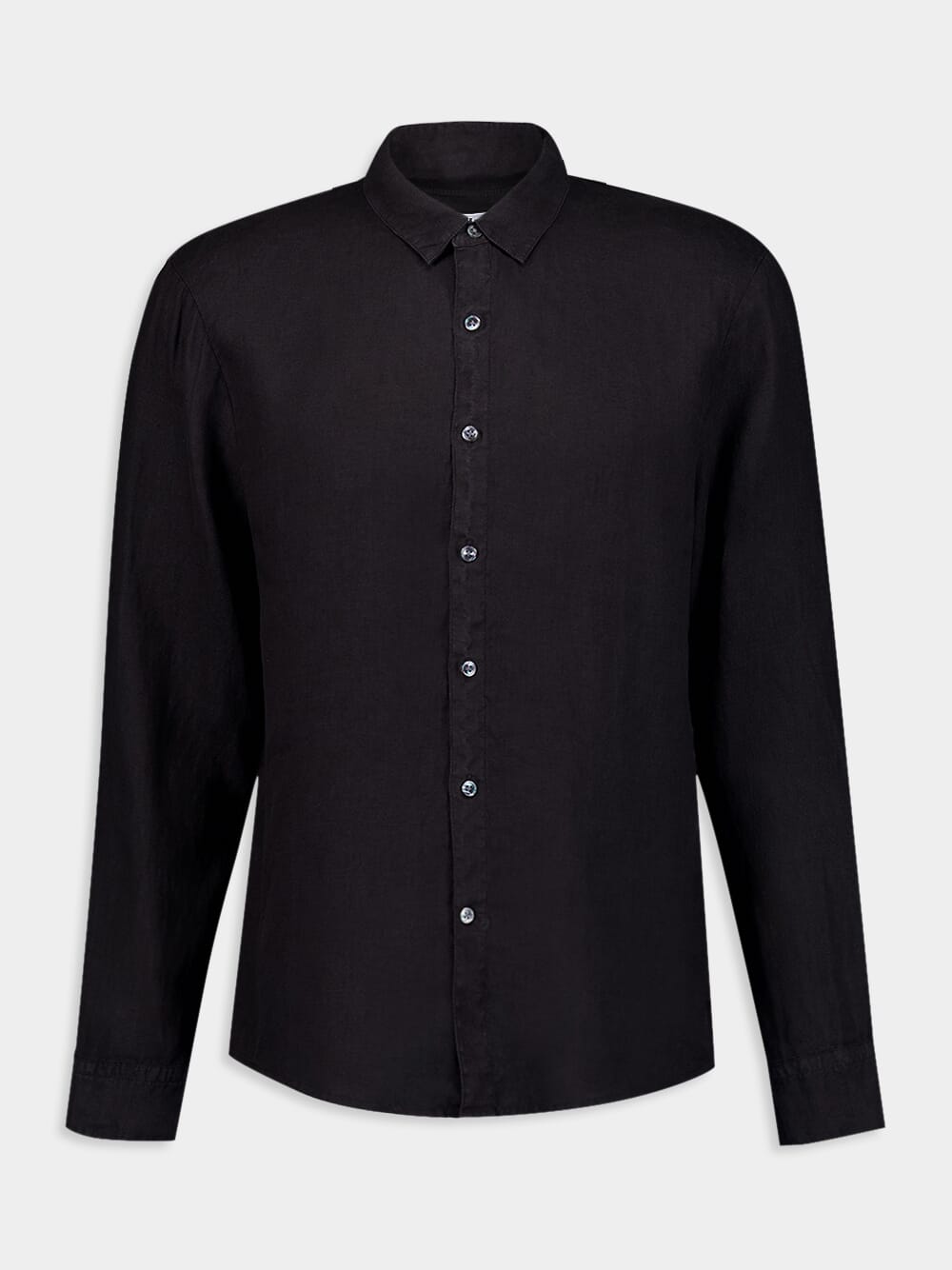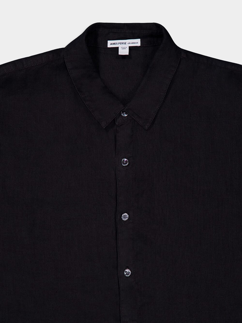Classic Linen Black Shirt, expertly crafted with garment-dyed lightweight linen for unparalleled comfort. Elevate your summer wardrobe with this soft and breathable essential, perfect for everyday wear. This timeless shirt features a stylish collar, button front closure, full-length sleeves with placket at cuffs, and a shirttail hem.