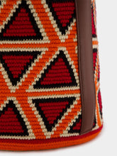 The Colville Maxi Triangle Cylinder Bag is a stunning fusion of cultural craftsmanship and modern design. Woven by the Wayuu tribeswomen of Northern Colombia, this piece not only tells a story of heritage and community but also supports the local economy. Its rich tapestry of burnt orange, berry red with pink and black accents is both striking and meaningful. Assembled in Italy with a smooth black leather trim, an adjustable top handle, and a detachable brown leather cross-body strap, this bag is a versatile and sophisticated addition to any collection.