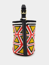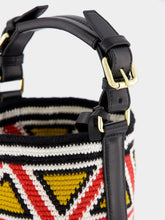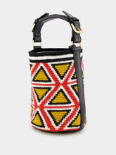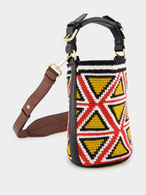 A fusion of art and fashion, this small cylinder bag showcases a bold triangle pattern with an earthy color palette. The handwoven detail speaks to artisanal craftsmanship, while the leather strap adds a touch of sophistication. Its compact size makes it an ideal accessory for day-to-day luxury and ease.