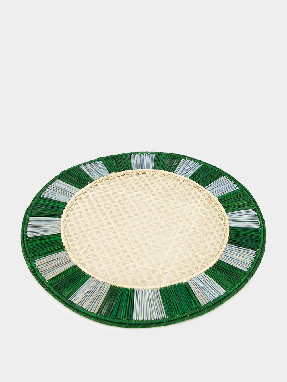 Green and Sky Blue Round Iraca Palm Twist Placemat