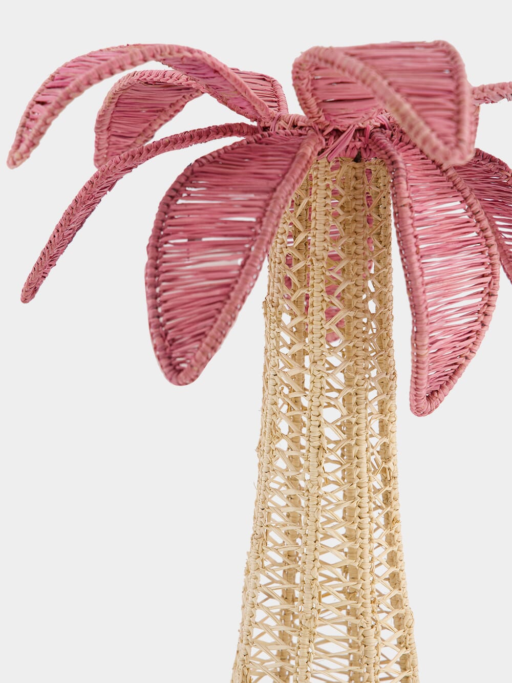 This exquisite Palm Tree Candle Holder is handwoven from Iraca palm, showcasing a stunning blend of craftsmanship and natural beauty. Its intricate design, featuring pink leaves and a natural beige base, adds an elegant touch to any setting. Ideal for creating a tropical ambiance, it serves as a perfect centerpiece for both indoor and outdoor spaces. This candle holder not only illuminates but also elevates the decor with its unique and artistic presence.