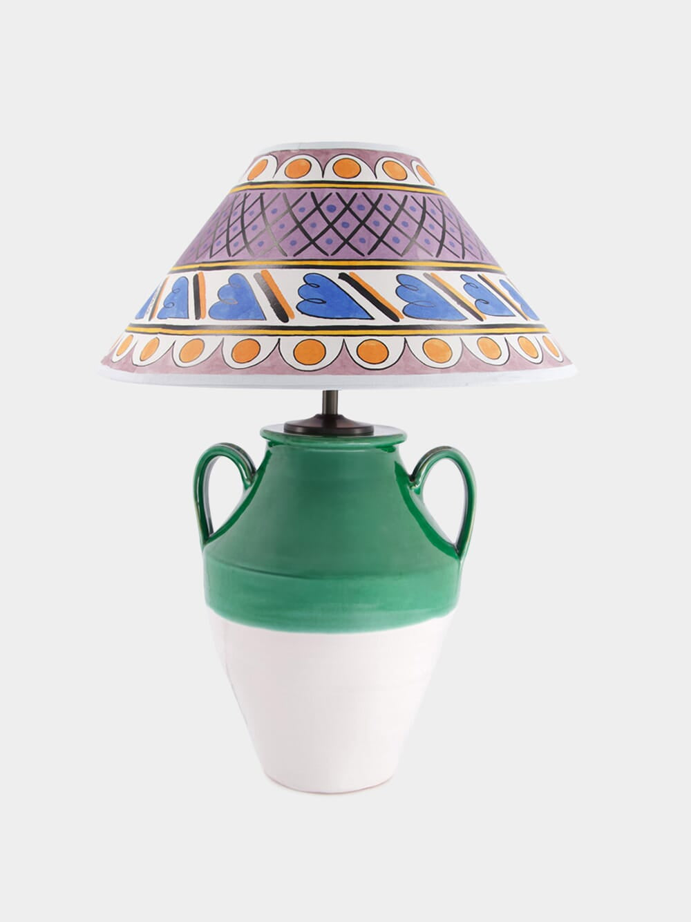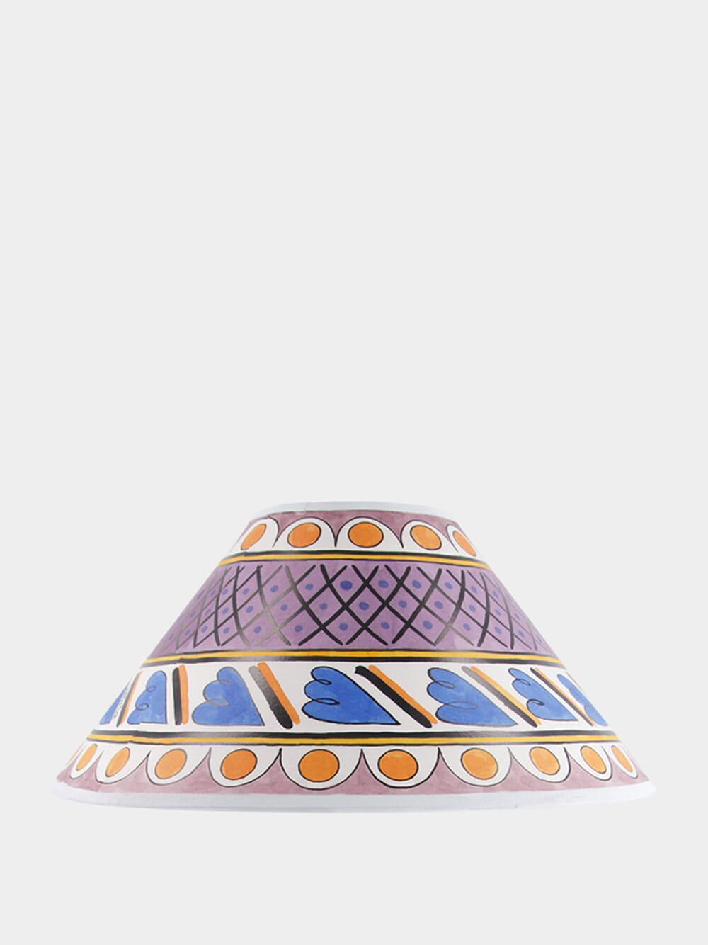 Cross-Hatch Lampshade, a paper marvel printed in elegant black and skillfully hand-painted. This exquisite lampshade is versatile, suitable for use with a lamp base or as a ceiling shade, adding a touch of sophistication to any space. Embrace the unique design, featuring a delightful combination of circles and stripes, bringing a contemporary and artistic flair to your decor. Lamp Base sold separately.