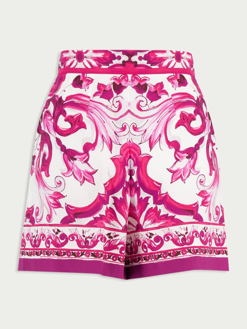 Majolica-Print Cotton Shorts, a delightful blend of style and comfort. The eye-catching Majolica print exudes an artistic charm, making these shorts a fashion statement. Designed with a flattering high waist and a wide leg, these shorts offer a flattering silhouette for all body types. With two side inset pockets for added convenience and a straight hem, they are both practical and chic. Embrace the summer vibes with these above-knee length shorts, perfect for any occasion.