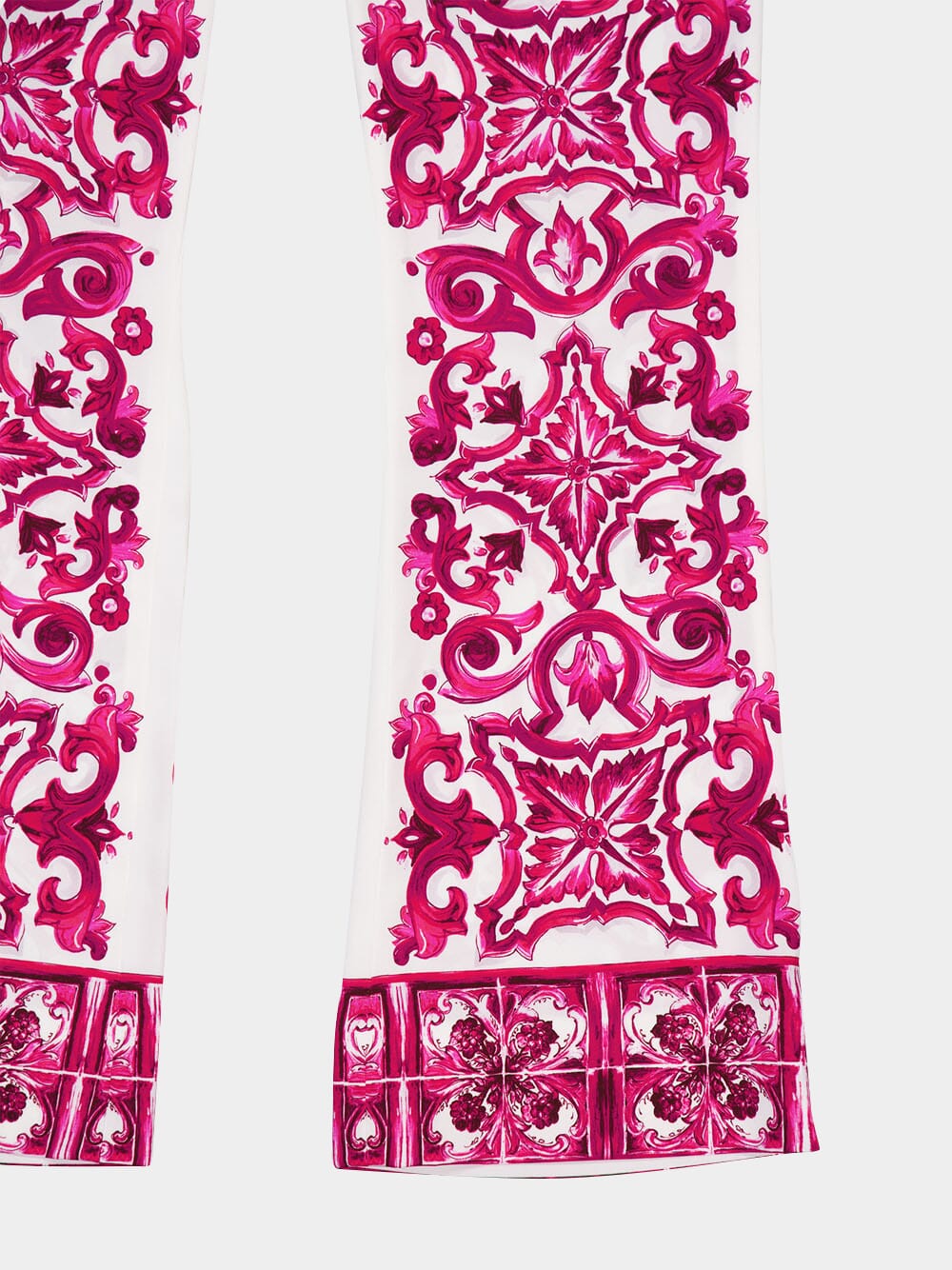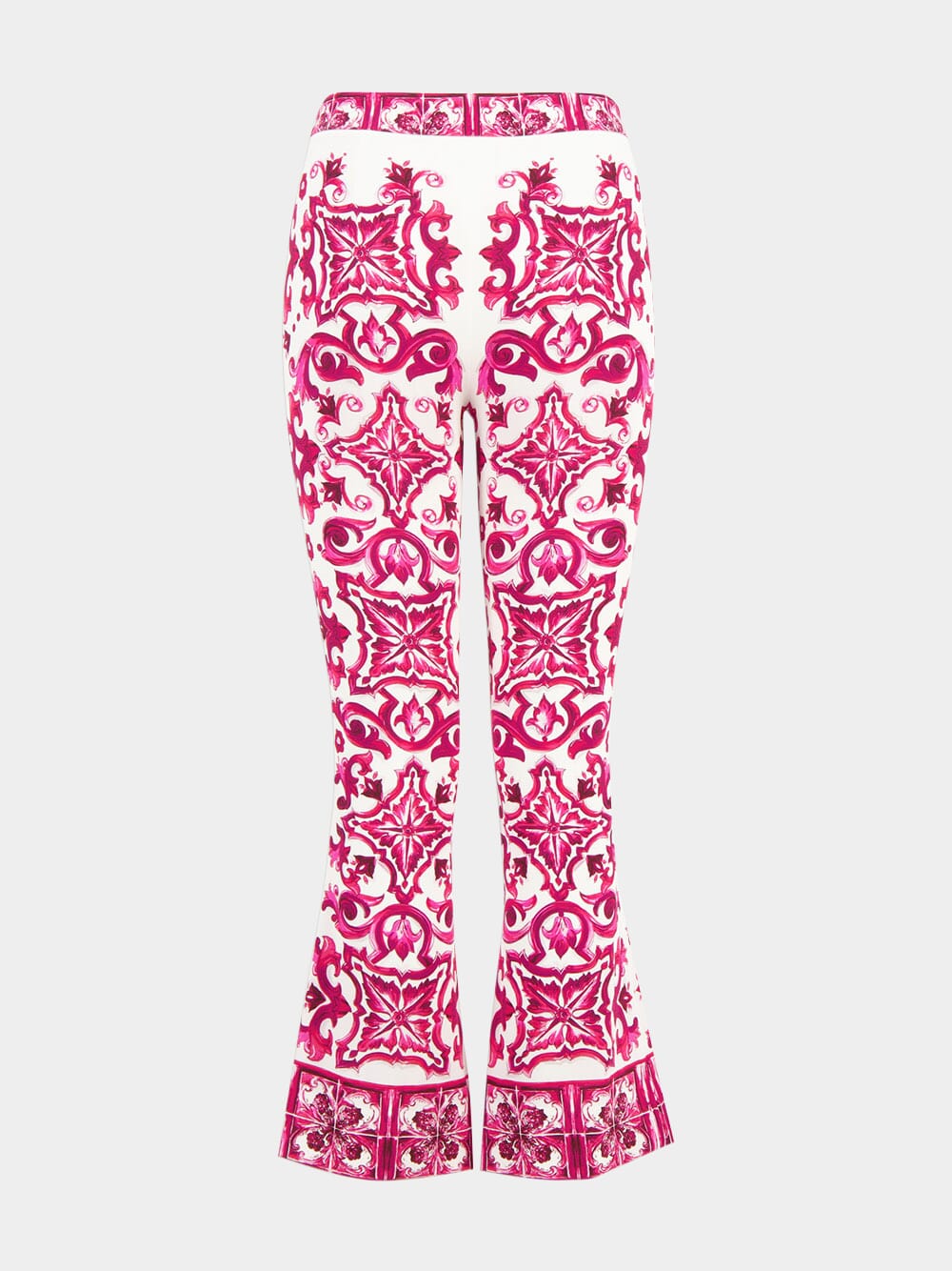 Majolica-Print Cropped Trousers, crafted from premium stretch-cotton for ultimate comfort and flexibility. The captivating Majolica print adds a vibrant and artistic touch to these trousers, making them a standout piece in your wardrobe. With a flattering mid-rise waist and a trendy flared design, these trousers offer a perfect balance between fashion and comfort. The cropped leg lengthens your silhouette and showcases your footwear effortlessly.