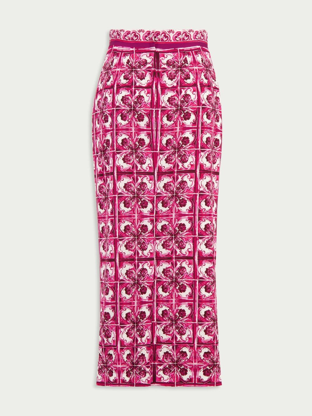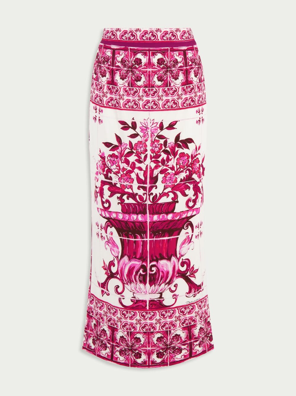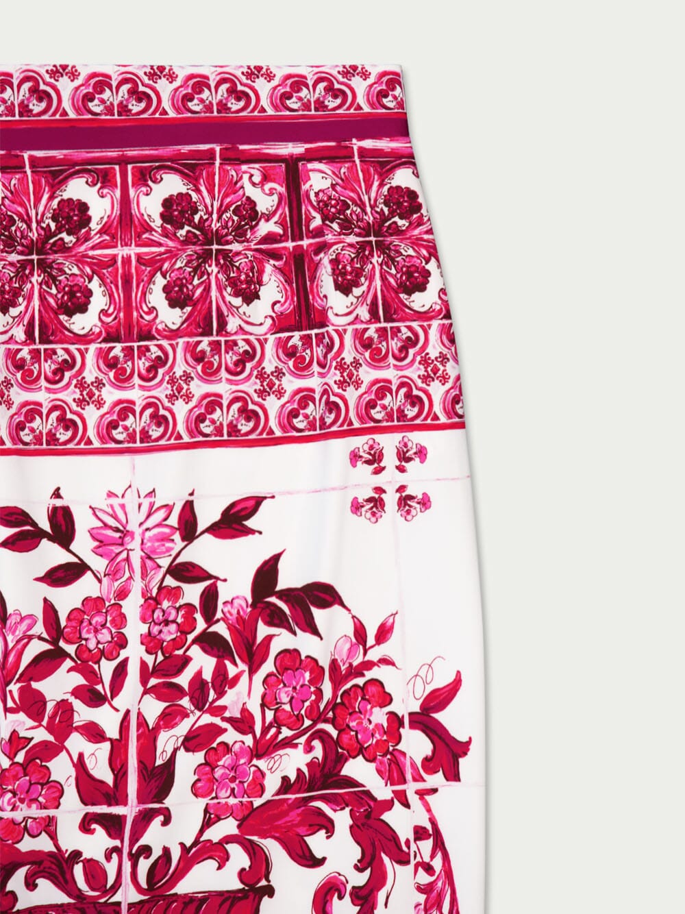 Majolica-Print Maxi Skirt, crafted from premium stretch-silk fabric, this skirt features a mesmerizing Majolica print that elevates your style effortlessly. The high waist design flatters your figure, while the concealed side zip fastening ensures a seamless look. Embrace comfort and elegance with side slits that add a touch of flair to your movement. With a straight hem, this maxi skirt is the perfect choice for a chic and sophisticated look.