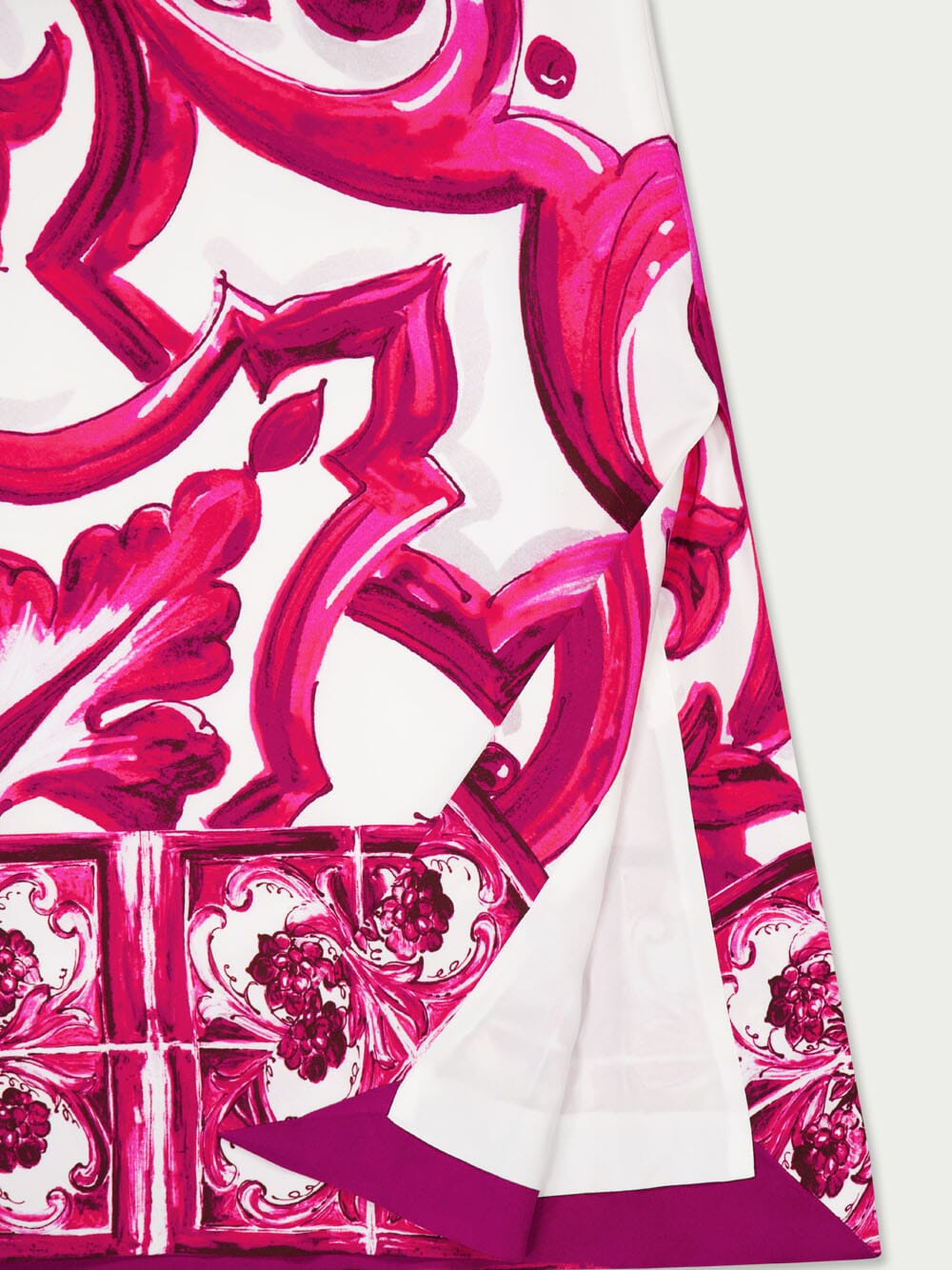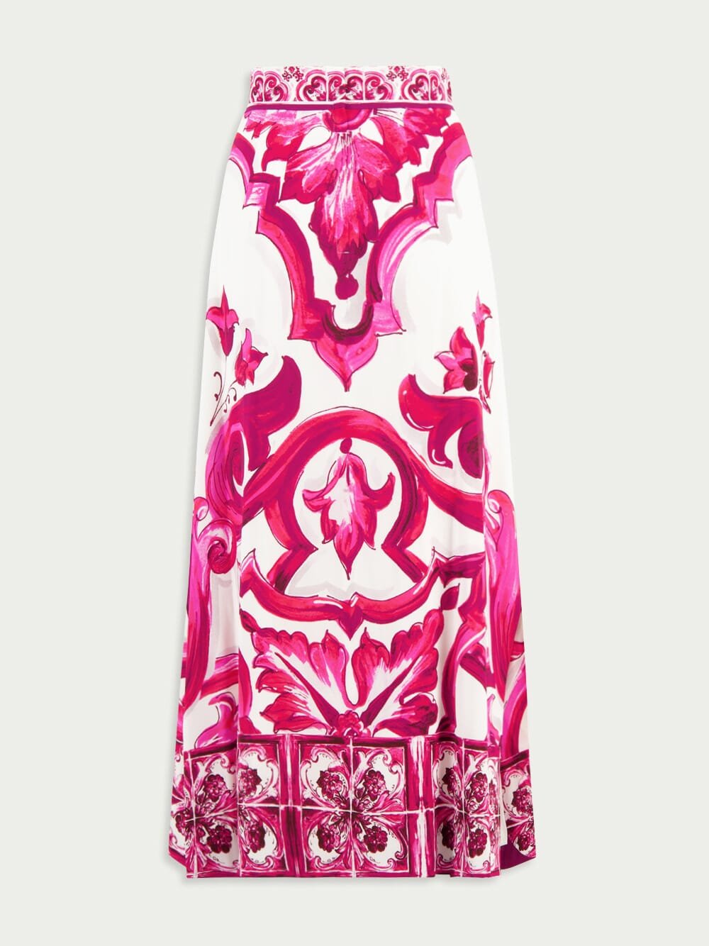 Majolica-print A-line skirt, crafted from premium stretch-silk fabric, this skirt features a mesmerizing Majolica-print that elevates your style effortlessly. The high waist design flatters your figure, while the concealed side zip fastening ensures a seamless look. Embrace comfort and elegance with side slits that add a touch of flair to your movement. With a straight hem, this maxi skirt is the perfect choice for a chic and sophisticated look.