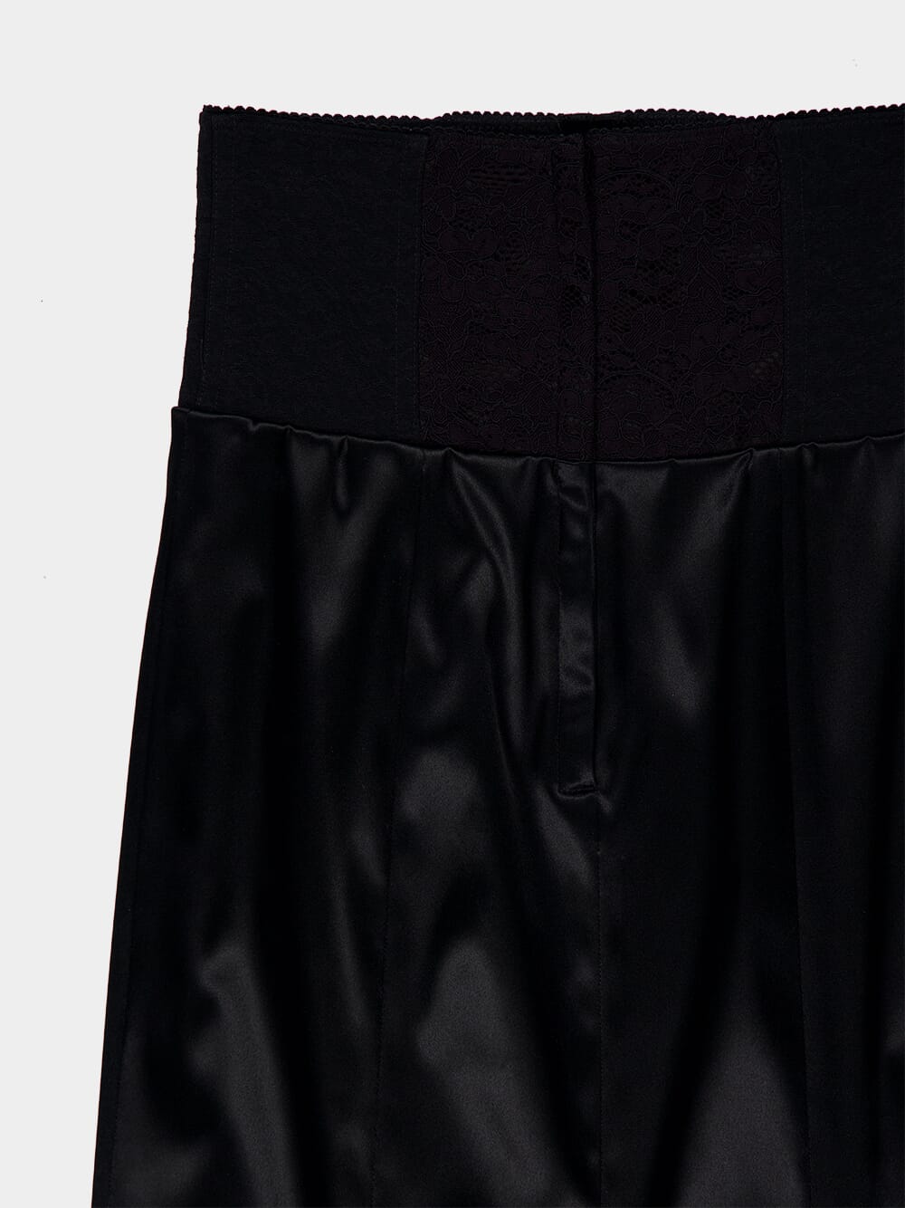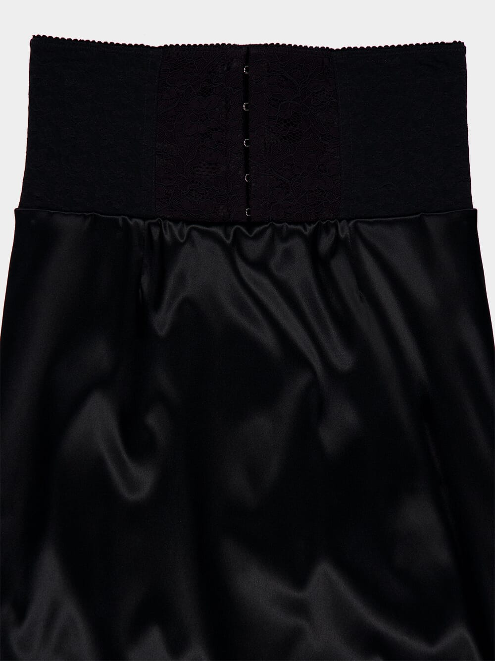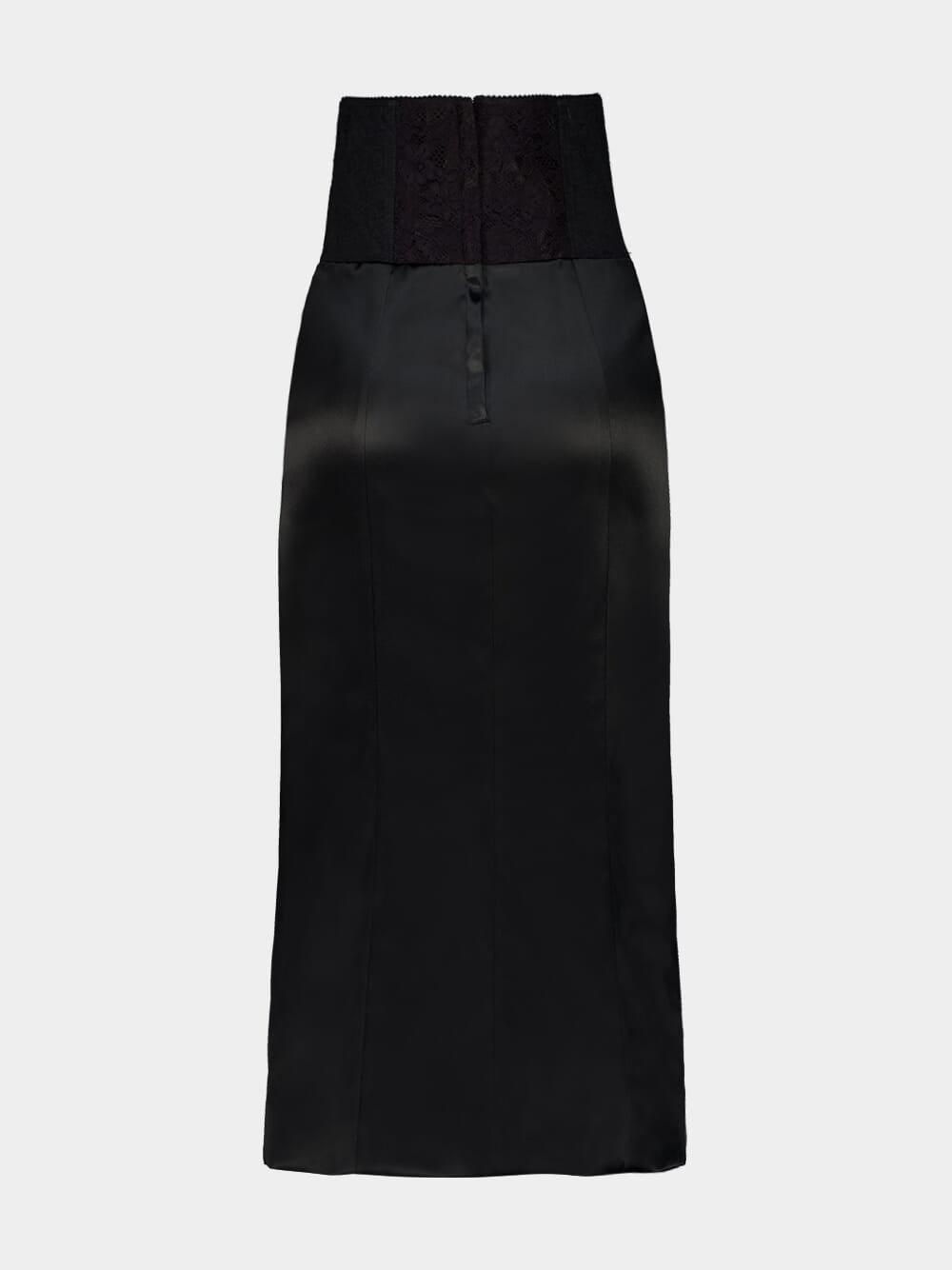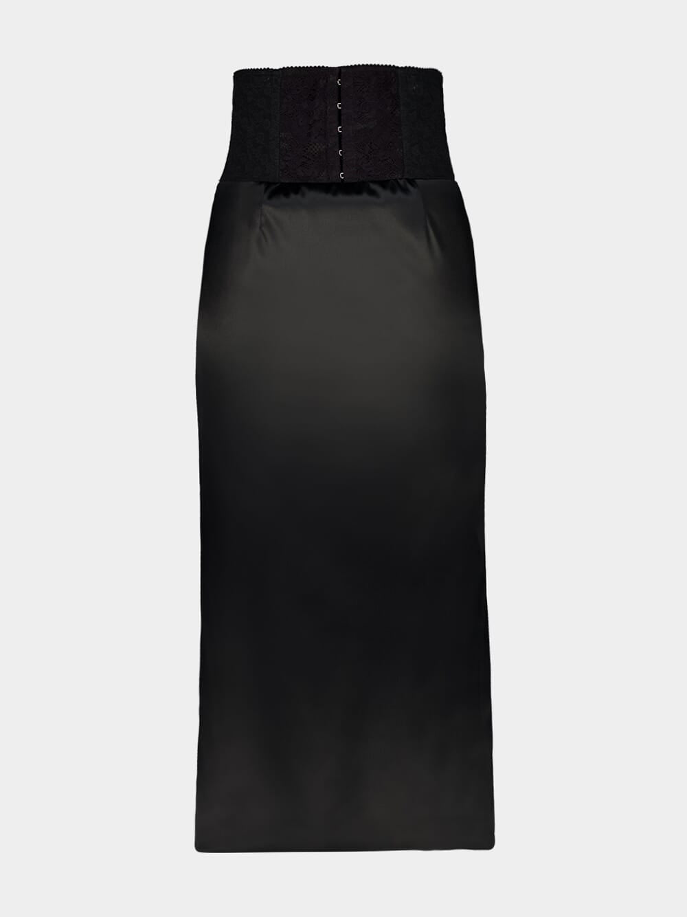 Black Satin Corset-Belt Midi Skirt