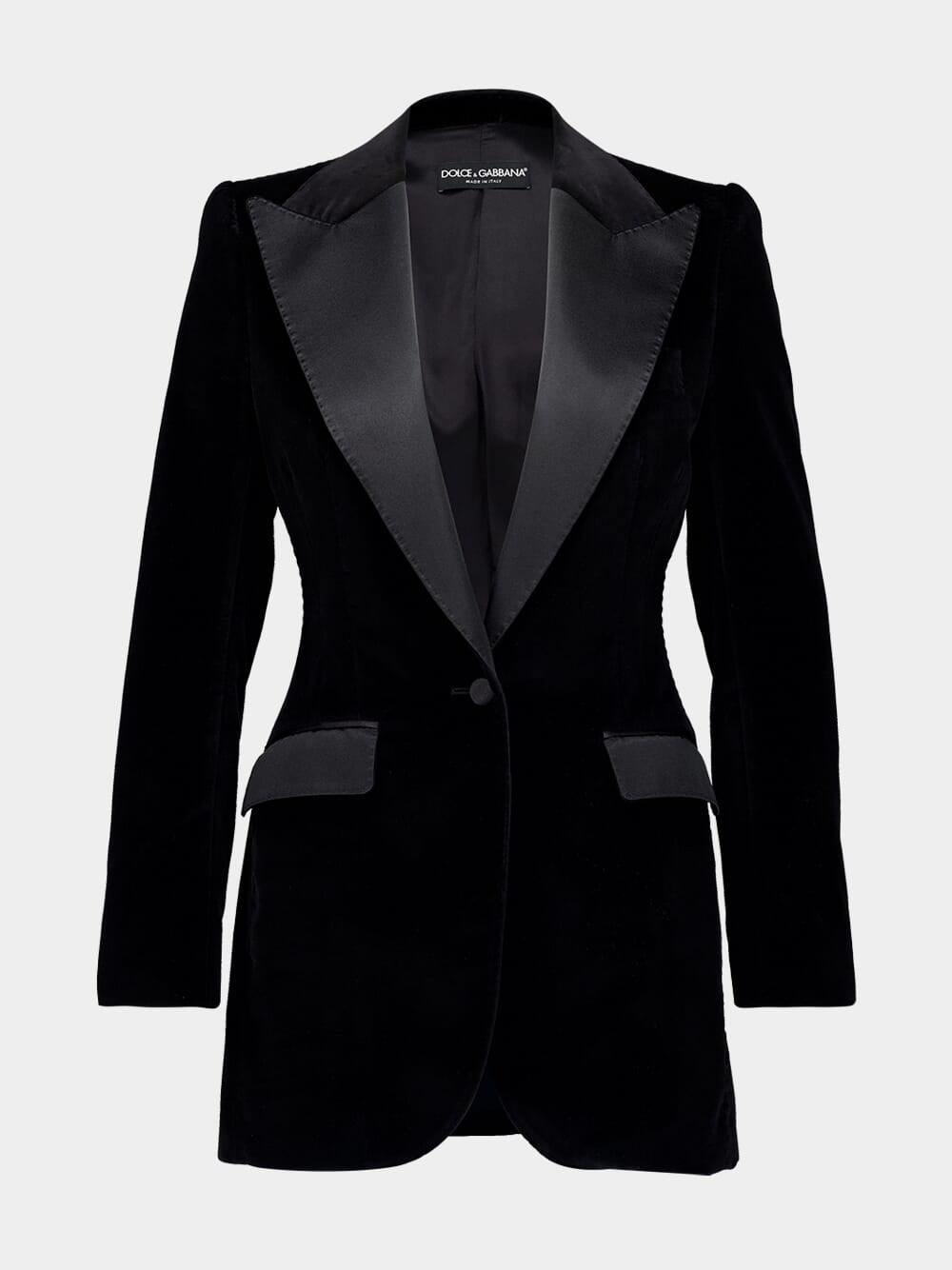 Black Single-Breasted Velvet Turlington Tuxedo Jacket