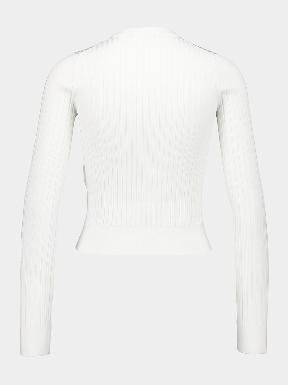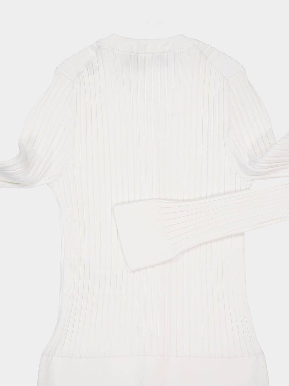 White Ribbed Viscose Sweater with Metal Logo Pin
