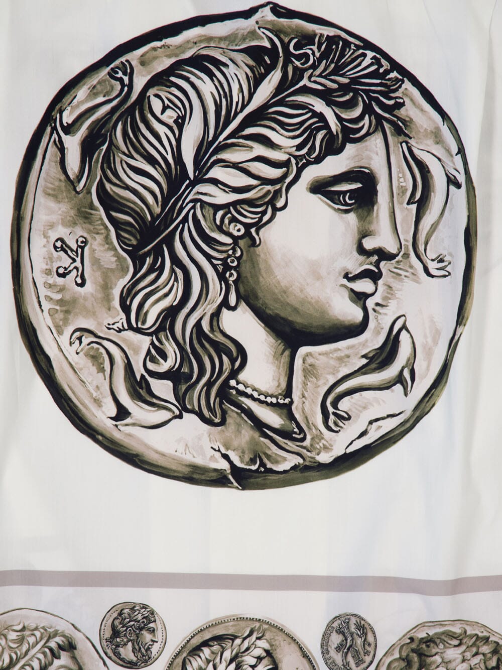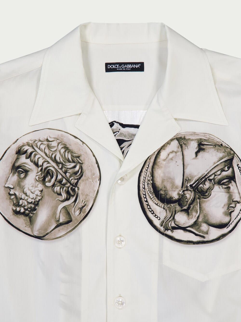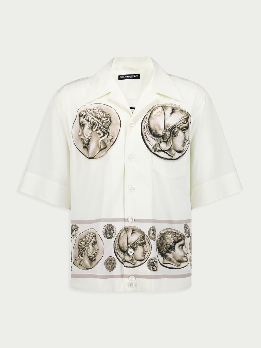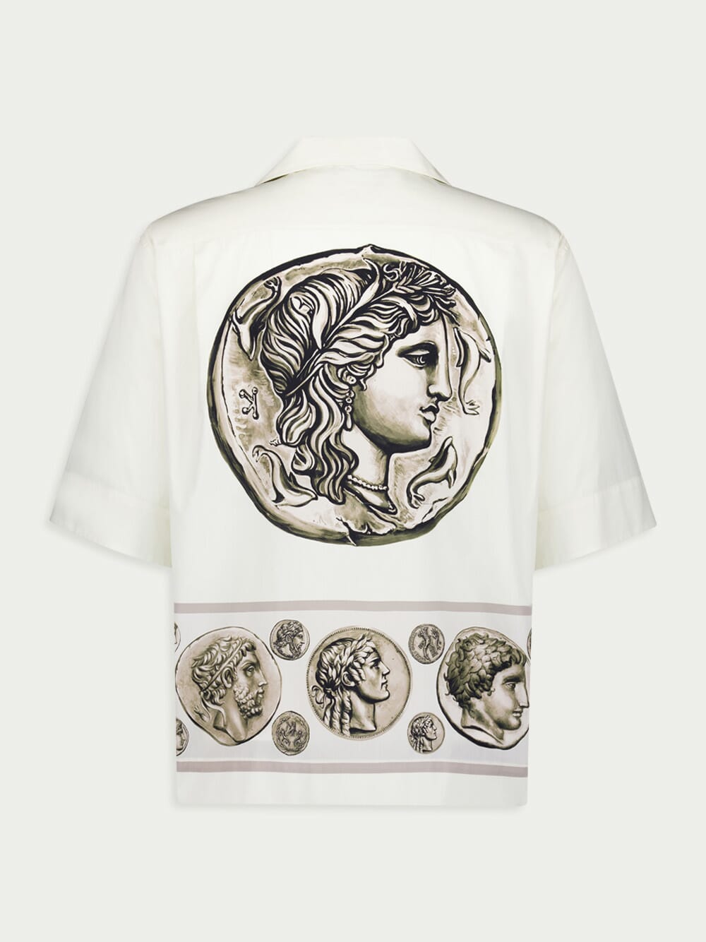 Coin-Print Cotton Shirt, boasting an eye-catching all-over graphic print. Embrace style and sophistication with a notched collar and convenient front button fastening, making it a versatile addition to your wardrobe. Perfect for warmer days, the short sleeves offer a relaxed and comfortable fit. Complete with a straight hem, this shirt exudes contemporary charm.
