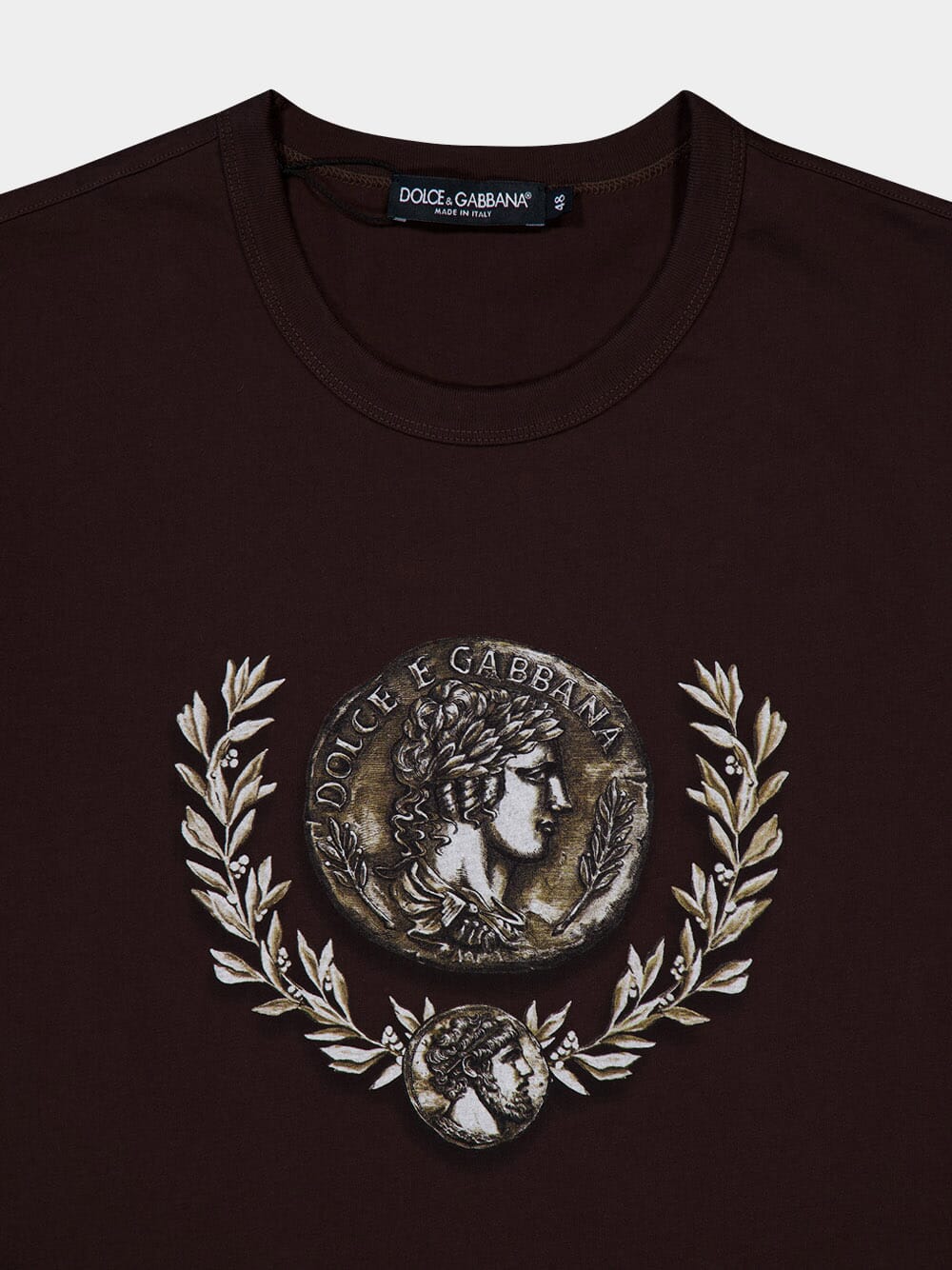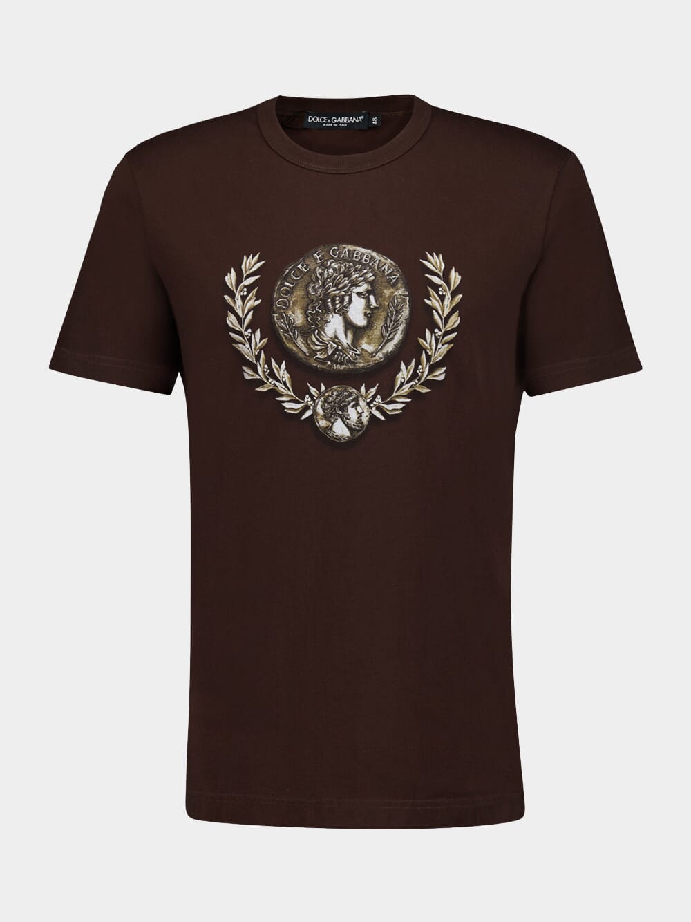 Coin-Print Cotton T-Shirt, a versatile wardrobe essential crafted for both comfort and fashion. Featuring a classic crew neck, this t-shirt showcases a captivating logo print to the front, adding a touch of unique charm. Embrace the casual chic vibe with short sleeves and a straight hem, perfectly tailored for everyday comfort and style.