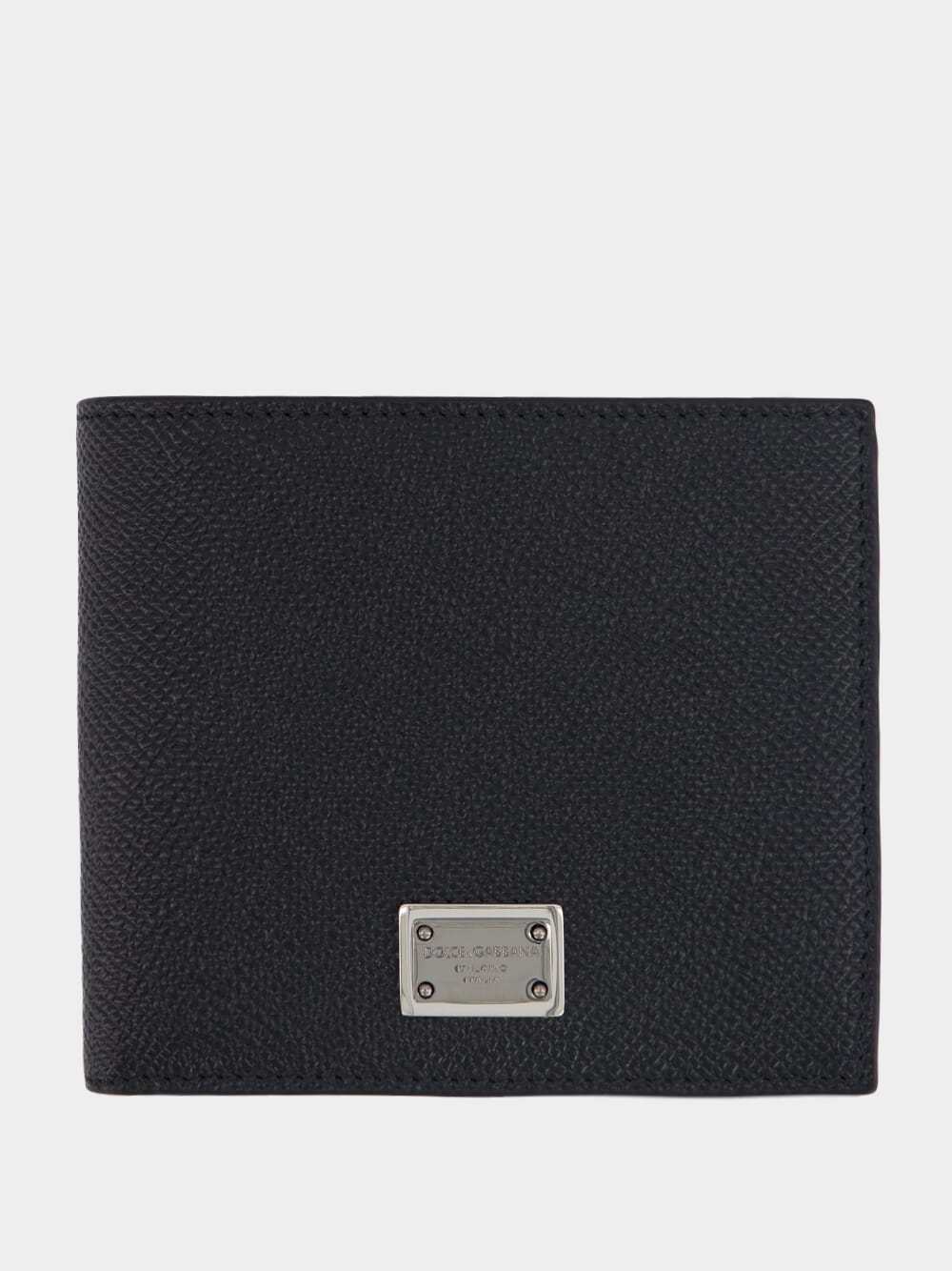 Dolce&Gabbana black leather cardholders with silver tone logo plaque.