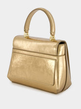 DG Logo Top-Handle Bag. This exquisite bag features a secure flap fastening with concealed double magnetic fastening for added elegance and security. Carry it by the top handle or opt for the adjustable, detachable strap in foiled craquelé calfskin for versatile wearing options. Inside, you'll find an Alcantara lining and a convenient zipped pocket. This elegant bag is accompanied by a branded dust bag, ensuring its safekeeping.