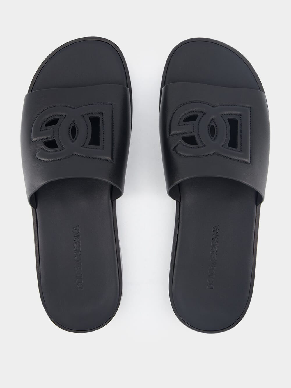 Embossed-Logo Leather Slides, the epitome of chic and comfort. These slides feature a single toe strap with an embossed logo to the front, adding a touch of sophistication to your look. Embrace a breezy feel with an open toe and round toe design. The branded footbed ensures premium quality and style, while the flat leather sole guarantees comfort with every step.