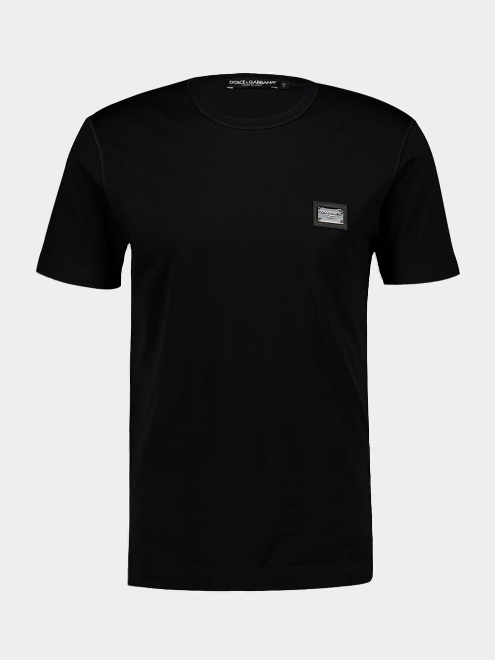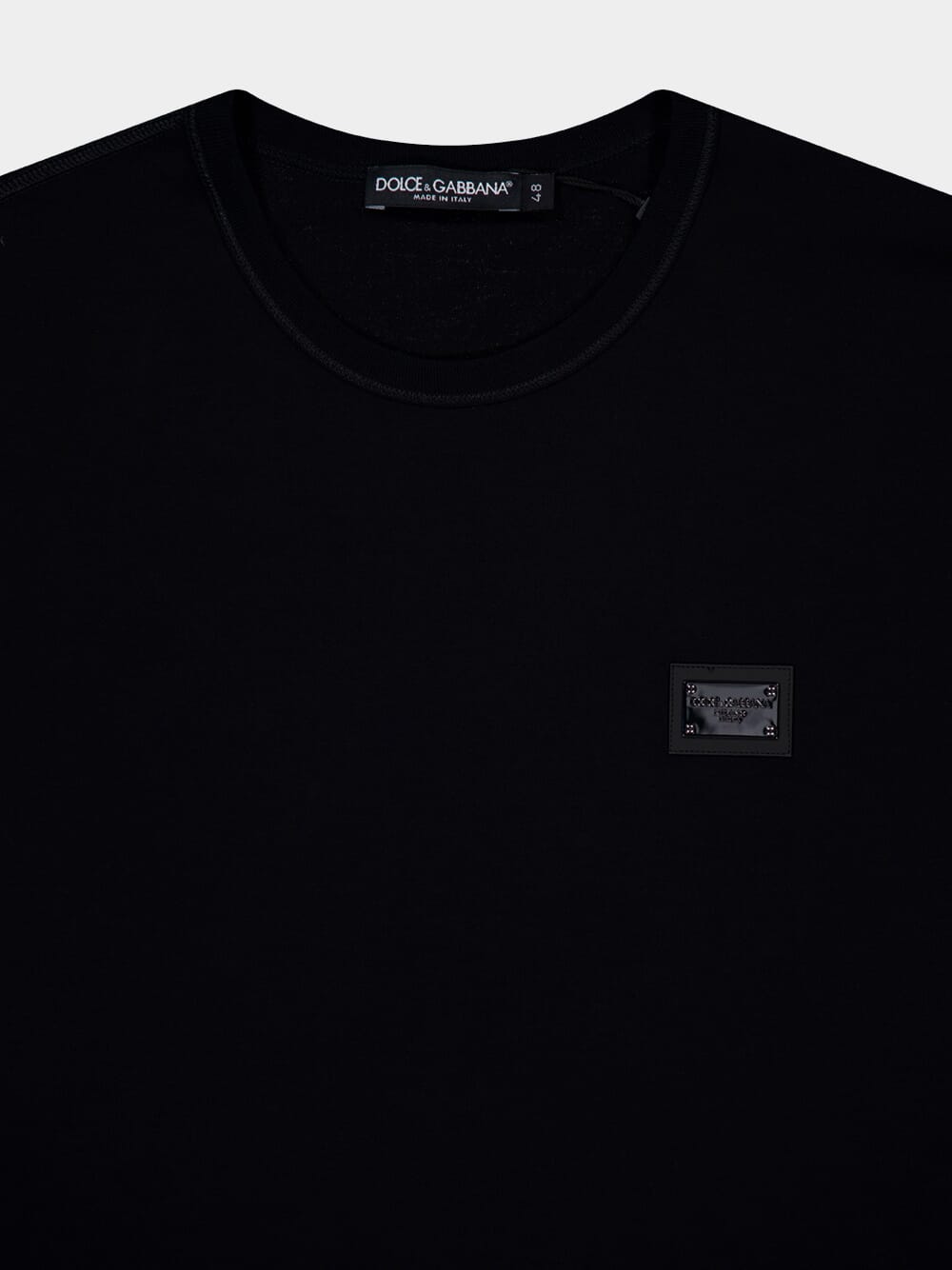 Dolce&Gabbana short sleeves cotton t-shirt contrasting with metal tag featuring the brand logo.