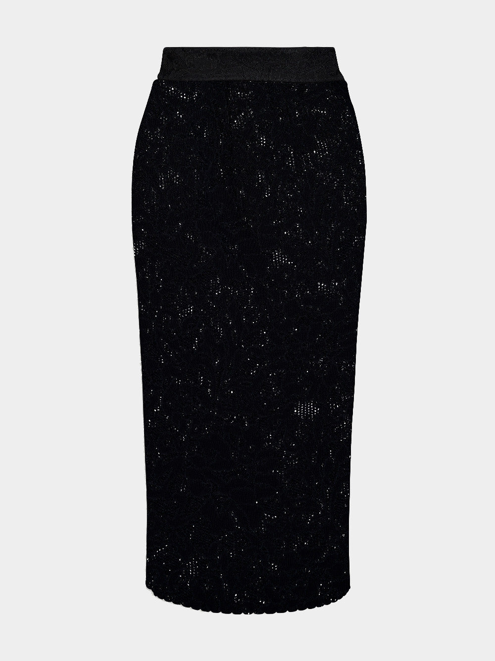 Floral-Lace Midi Skirt, with an intricate floral lace design that adds a touch of timeless beauty to your ensemble. Crafted with a semi-sheer construction, this skirt exudes delicate allure. With a high waist and concealed rear zip fastening, it ensures a flattering fit and effortless style. A central rear vent adds a hint of movement and sophistication. The straight hem and mid-calf length create a graceful silhouette, making it a perfect addition to your wardrobe.