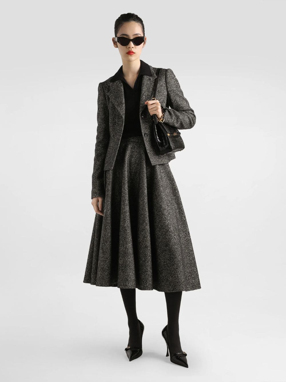 This grey single-breasted jacket in a dotted wool blend by Dolce & Gabbana embodies modern sophistication. Crafted in Italy, it features a lapel neckline, sculpted silhouette, and refined vertical welt pocket. With a structured fit and full leopard-print lining, it’s a timeless piece for elegant, everyday dressing. Perfect for the contemporary woman with a taste for luxury.