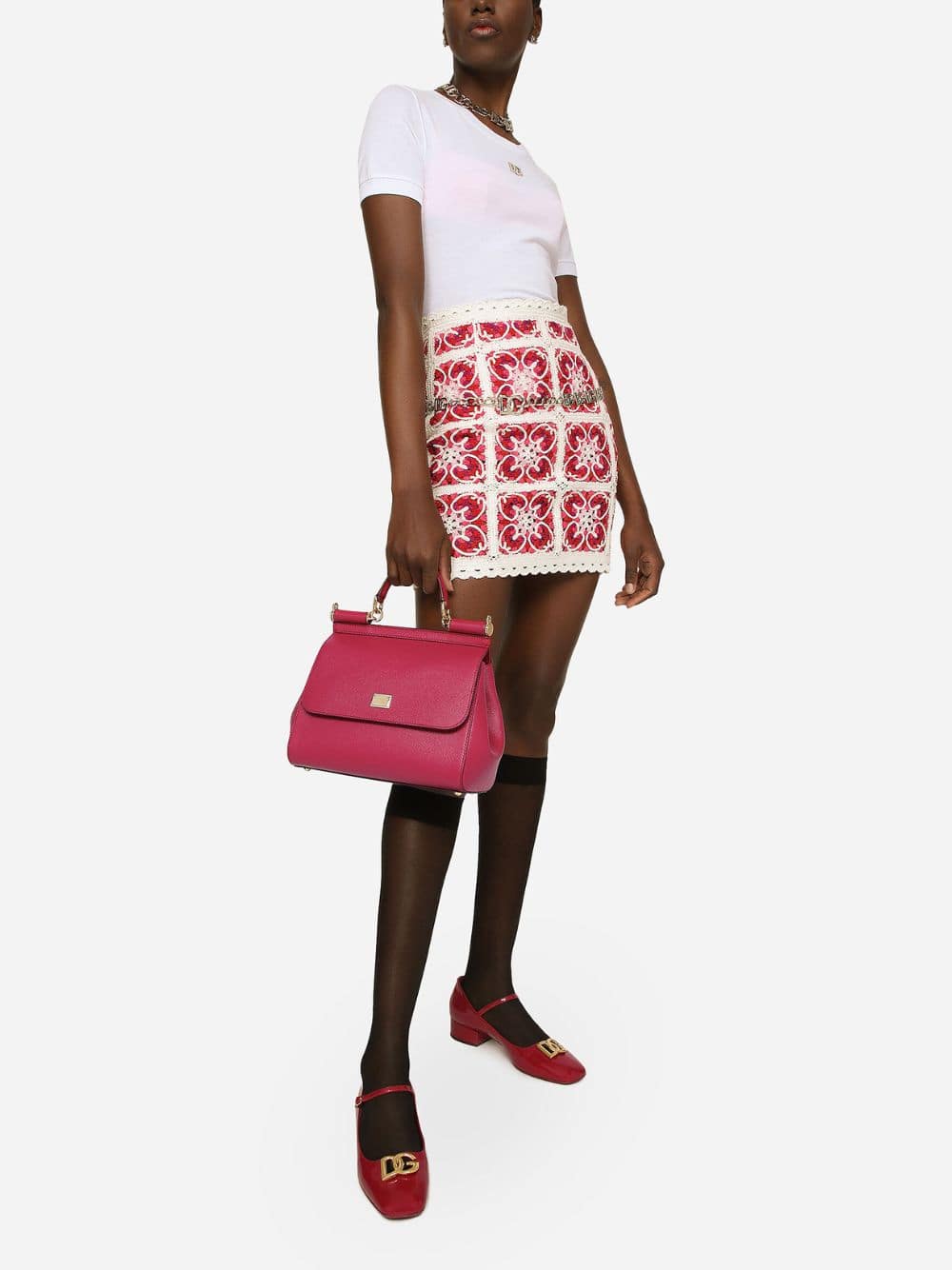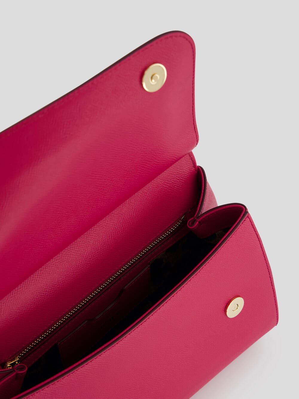 Large Sicily handbag, a timeless bag crafted with luxurious leather. The front flap features a hidden double magnetic fastening, ensuring a secure closure. A logo tag with two metal plating finishes adds a touch of sophistication. This iconic handbag offers versatility with a top handle and adjustable, detachable strap in Dauphine calfskin. Inside, you'll find a printed fabric lining, along with an inner pocket with a branded zipper and a cell phone holder. For added durability, metal feet studs are placed on the base, ensuring longevity. The item comes with a branded dust bag, completing this exquisite handbag with elegance and care.