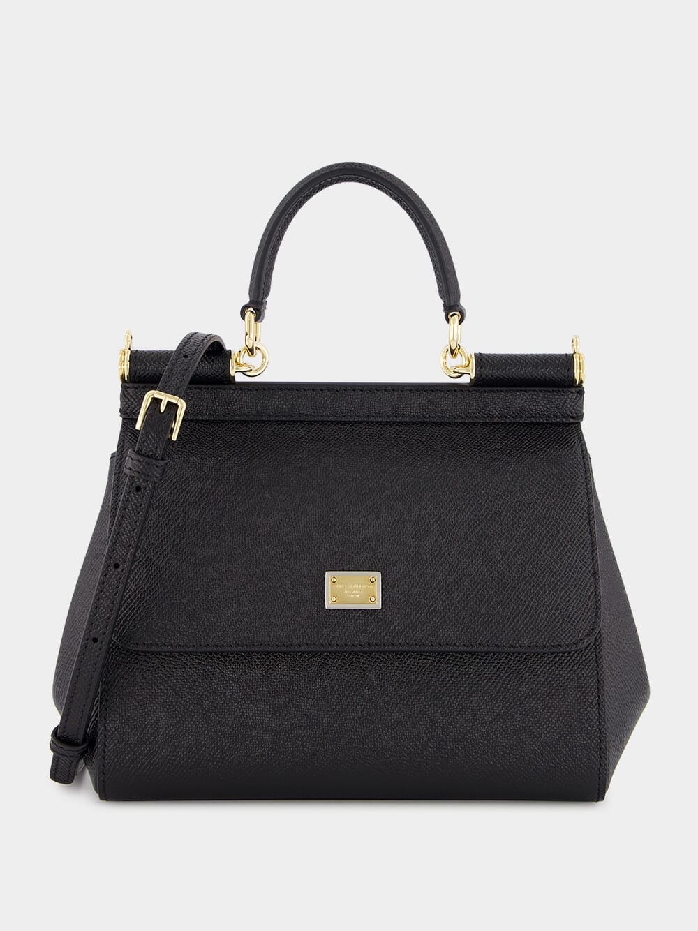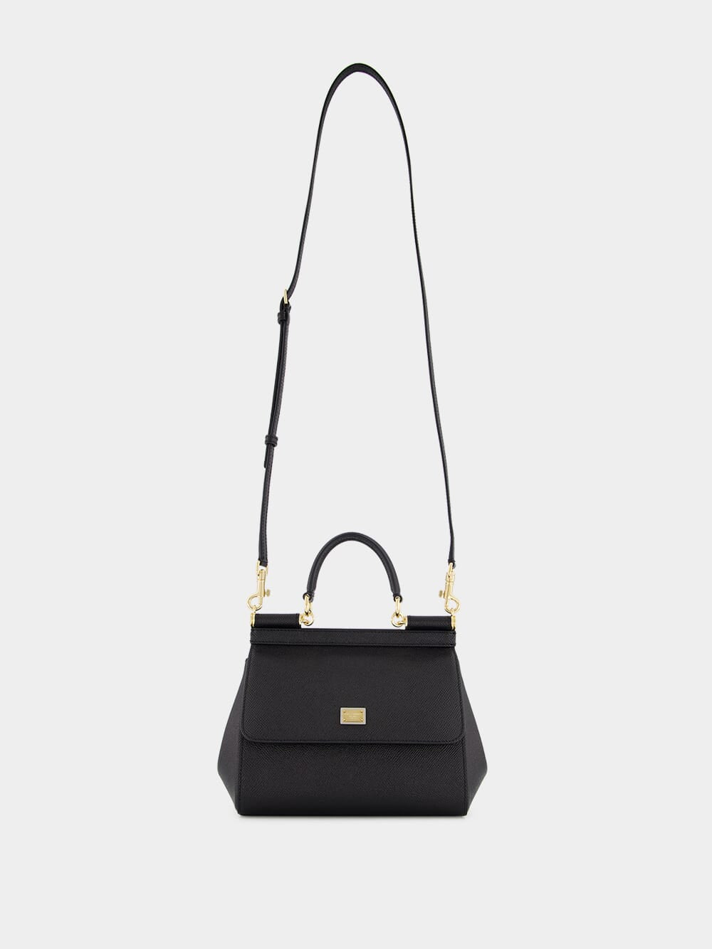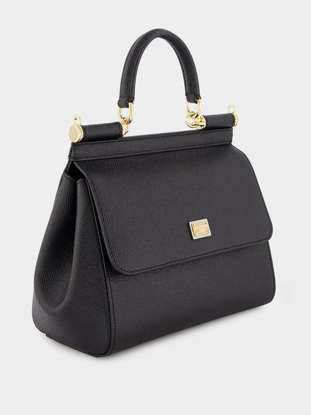 Dolce&Gabbana small dauphine leather Sicily bag in nero. Featuring a front flap with hidden press-stud closure and front logoed galvanic plaque, one top handle with removable and adjustable leather strap and na internal smartphone pocket.
