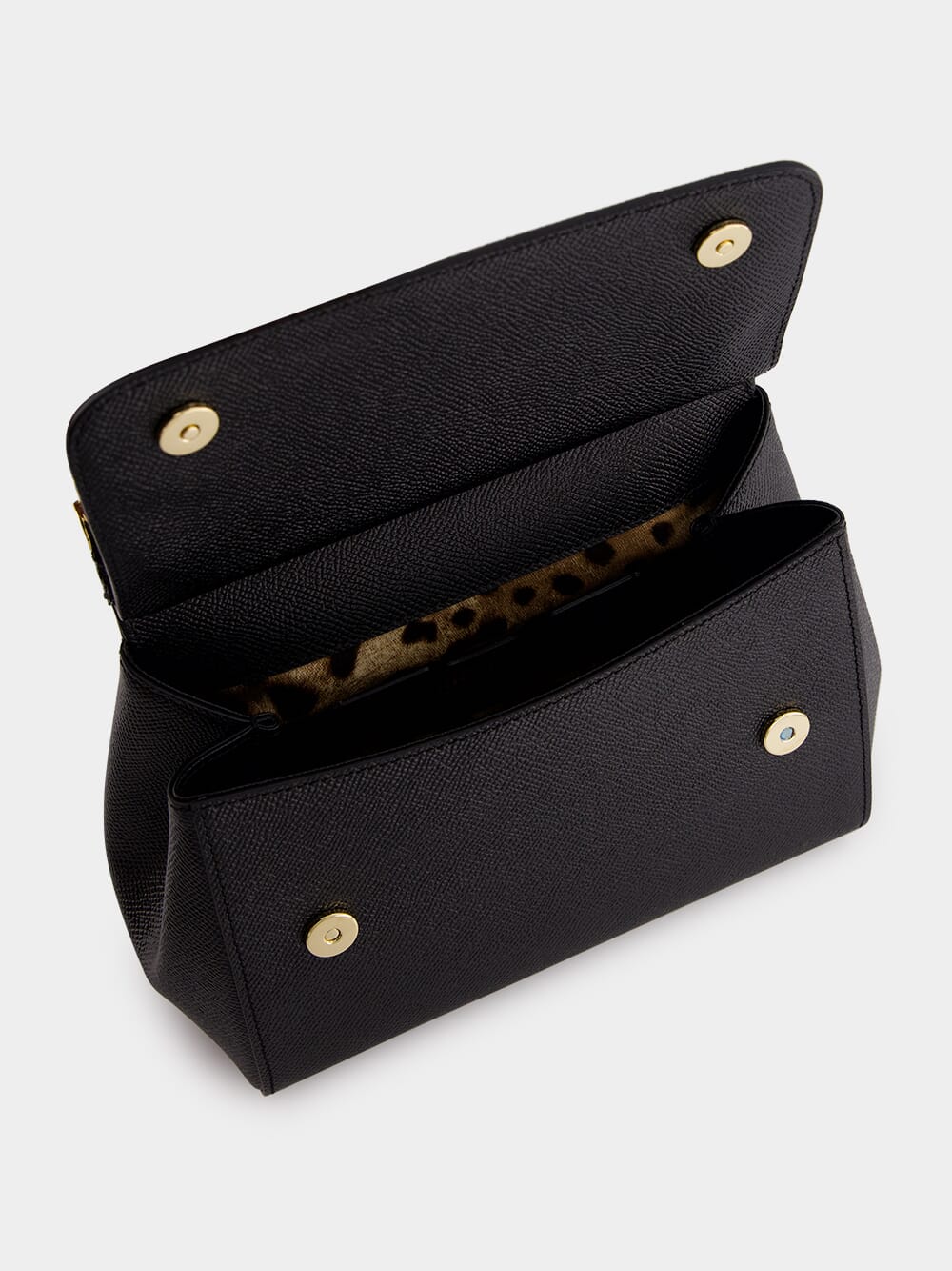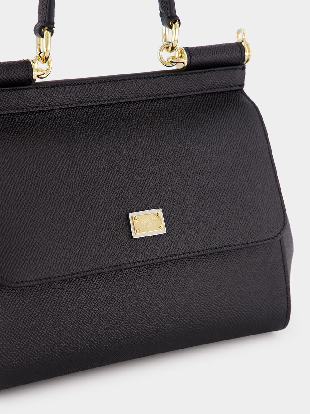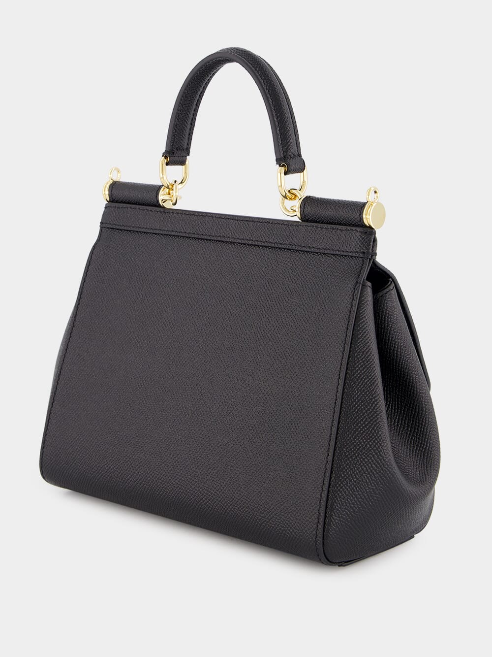 Dolce&Gabbana small dauphine leather Sicily bag in nero. Featuring a front flap with hidden press-stud closure and front logoed galvanic plaque, one top handle with removable and adjustable leather strap and na internal smartphone pocket.
