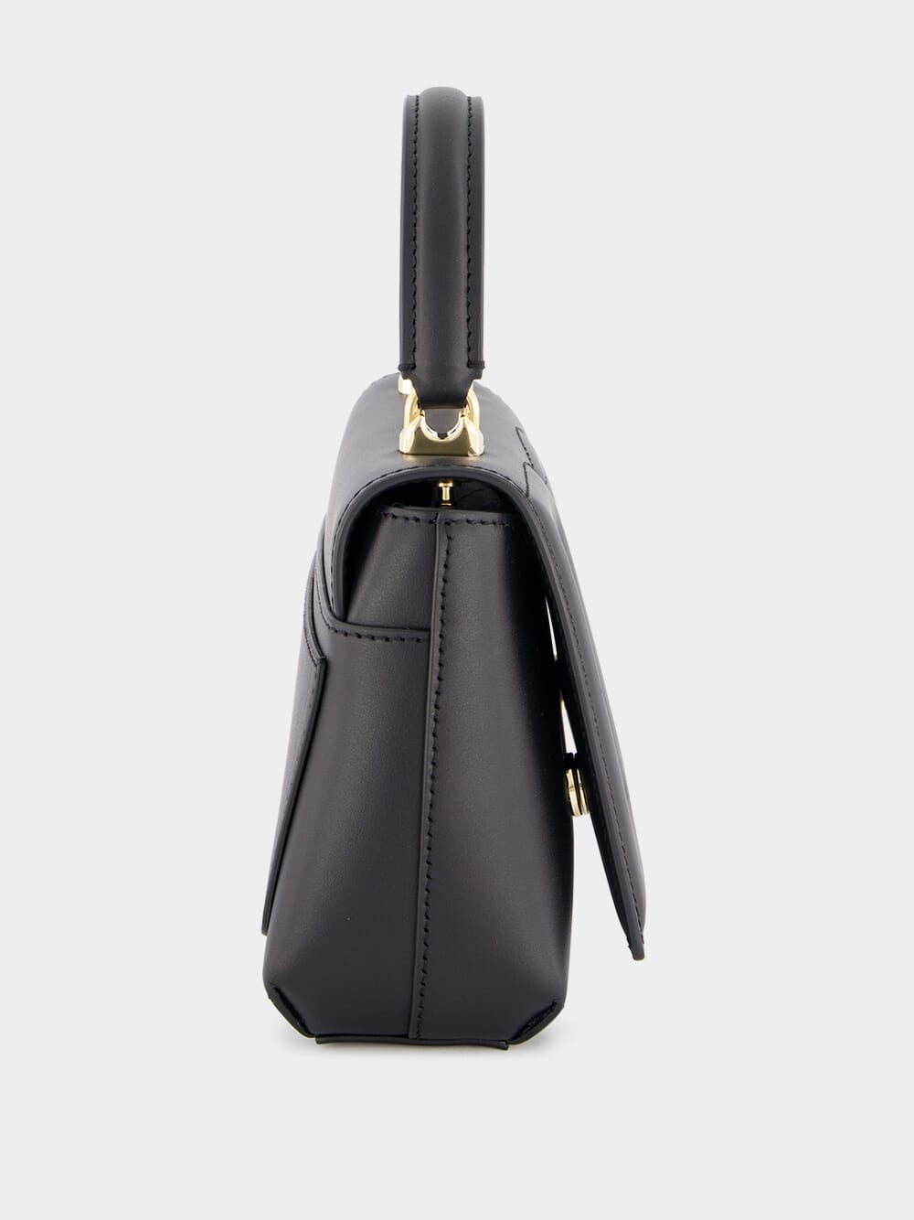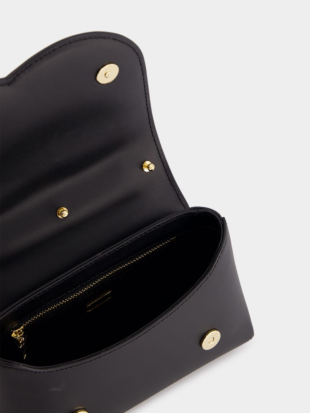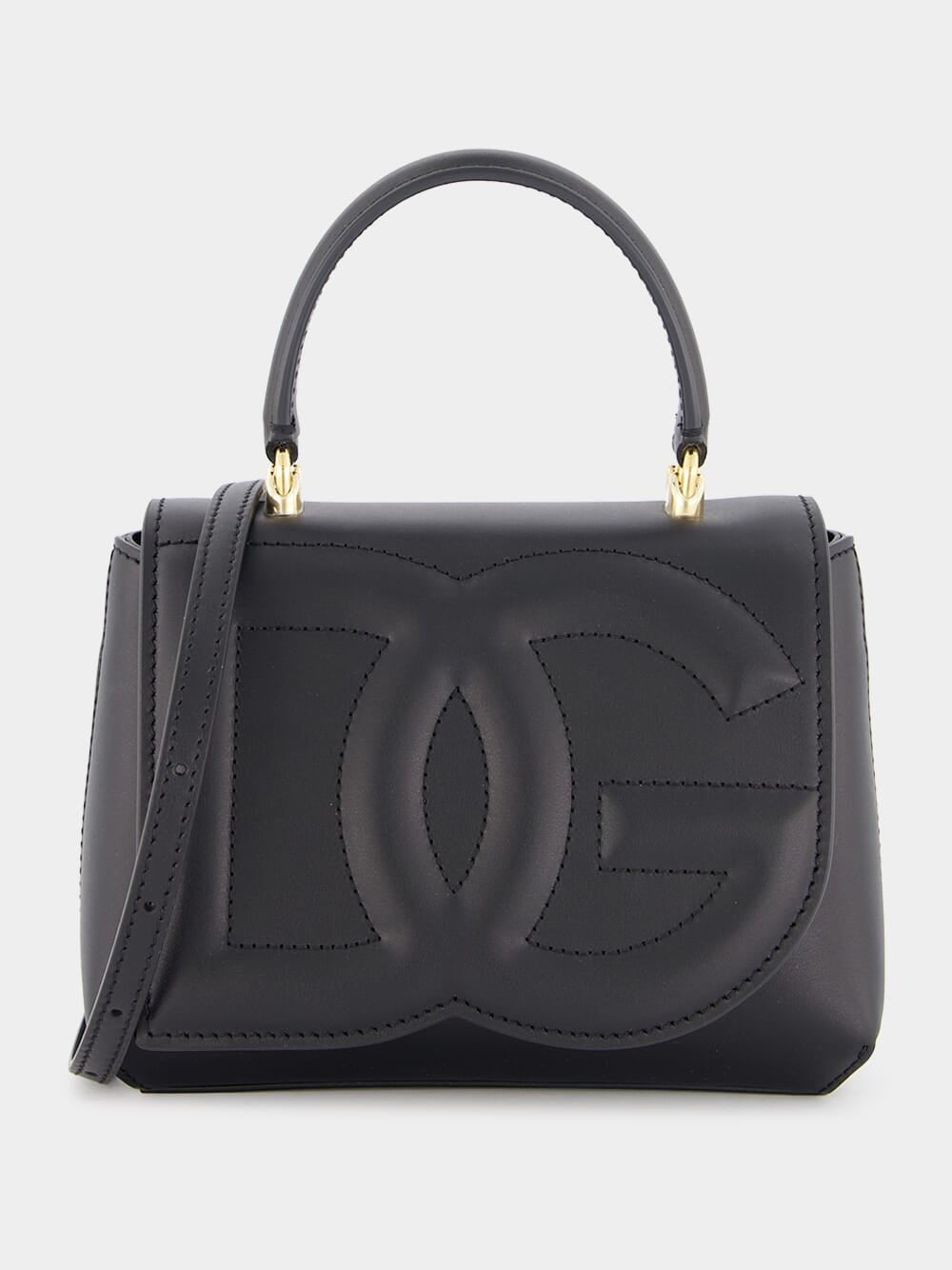 Elevate your style with the black Logo-Embossed Leather Shoulder Bag from Dolce & Gabbana. Crafted from smooth leather, this chic design is adorned with magnetic snaps, a distinctive logo detail, and a convenient back pocket. The half-round handle adds a touch of elegance, while the detachable and adjustable shoulder strap enhances versatility. With gold-tone metal hardware and an internal compartment featuring a zip pocket, this bag combines fashion and function seamlessly for a sophisticated accessory statement.