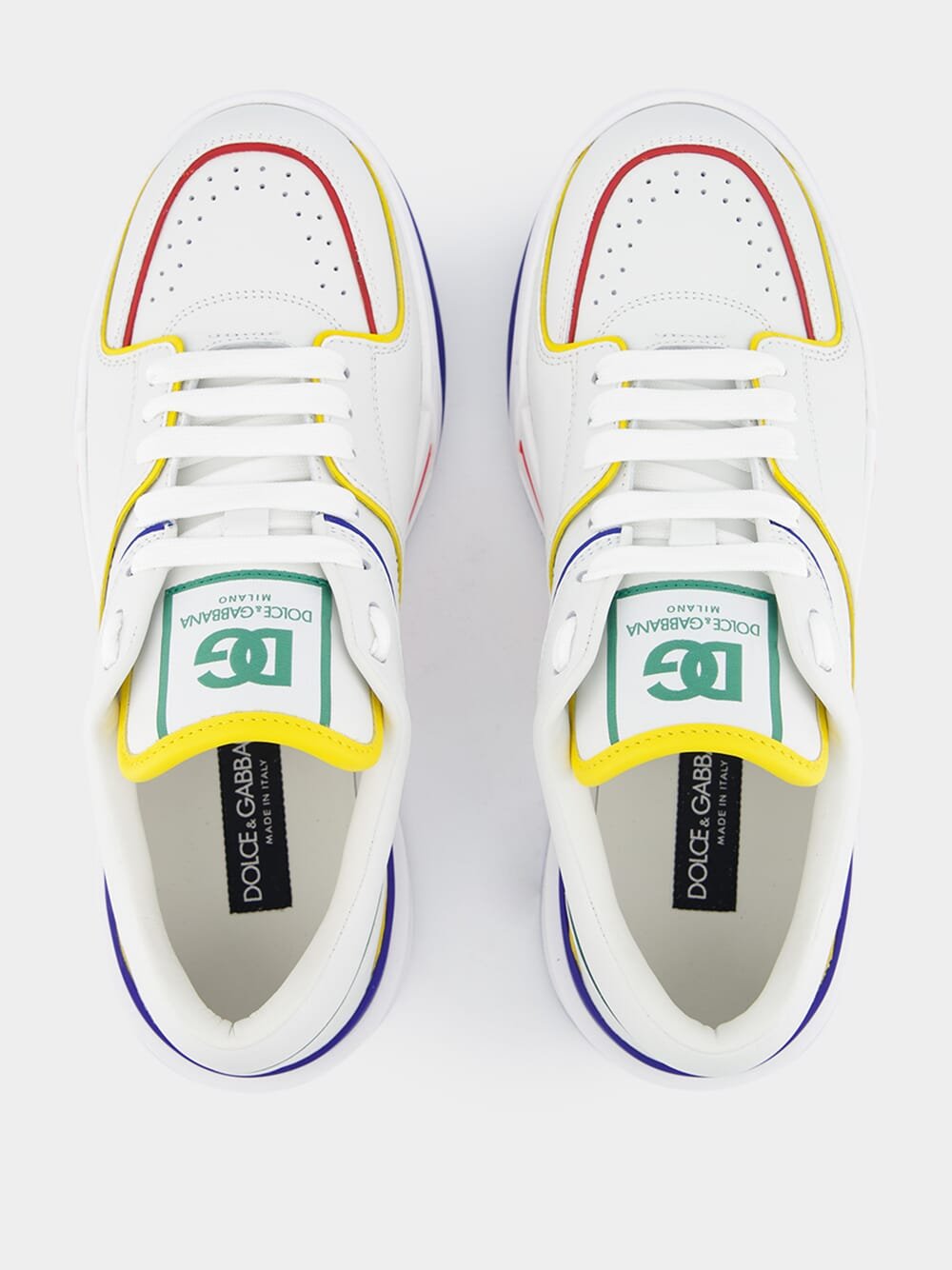 New Roma Contrast-Trimmed Sneakers, feature eye-catching contrasting trim, adding a modern and trendy touch to your outfit. Embrace breathability and texture with perforated detailing, ensuring a comfortable experience for your feet. The round toe and front lace-up fastening offer a classic and secure fit. Enjoy premium quality and comfort with the branded insole, while the flat rubber sole guarantees durability and a fashion-forward look.
