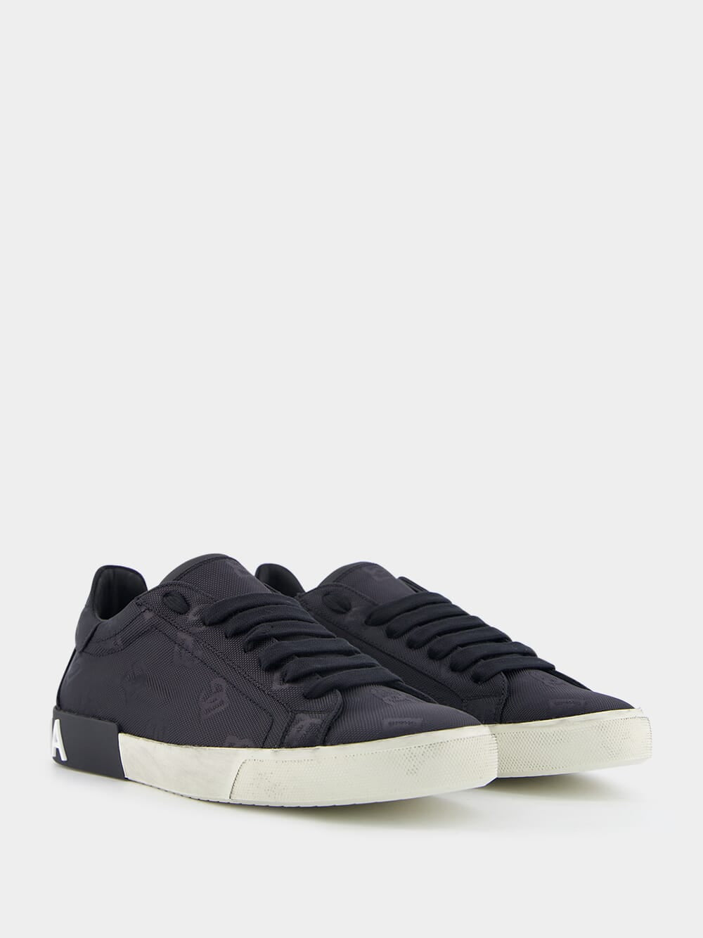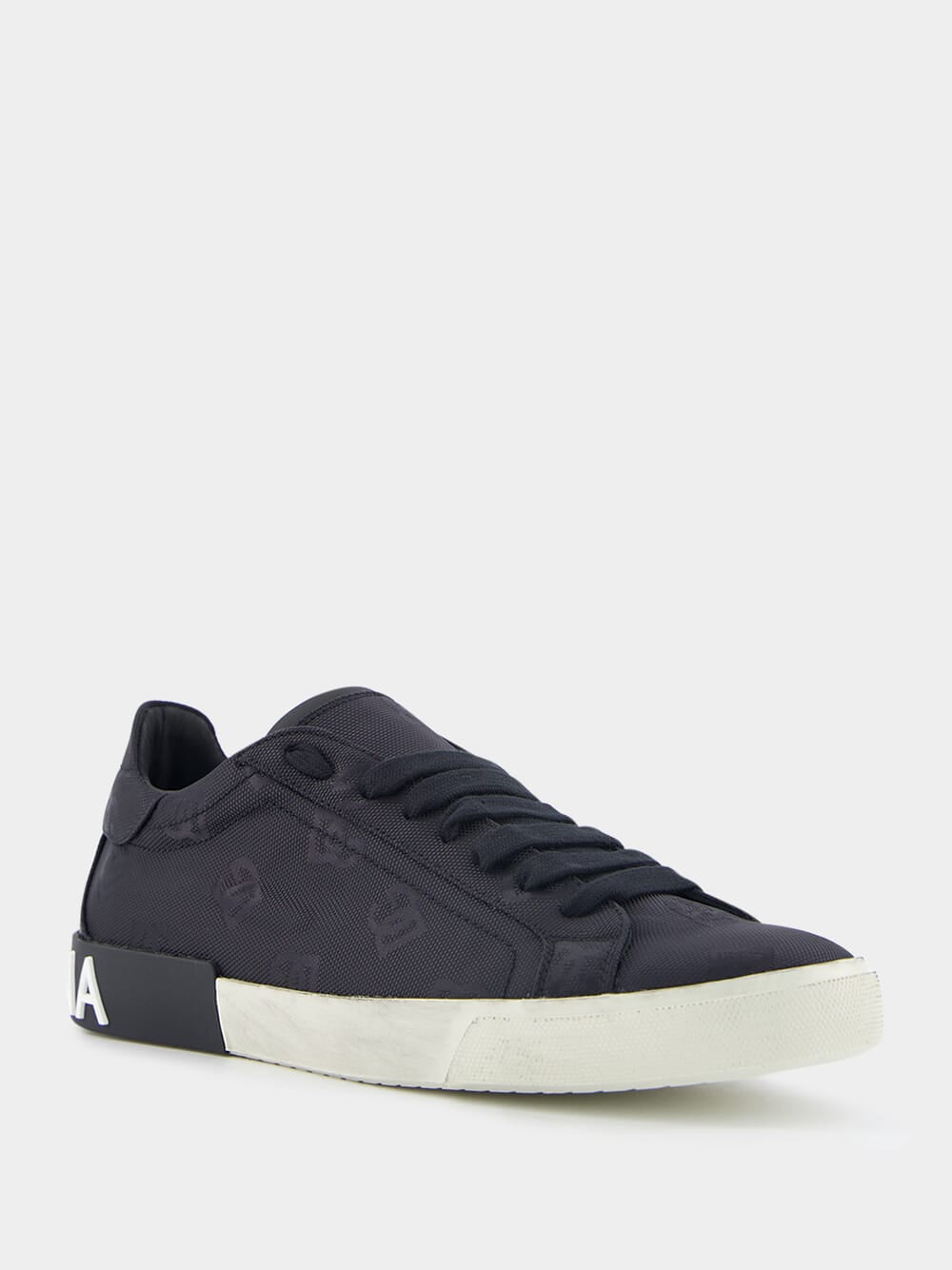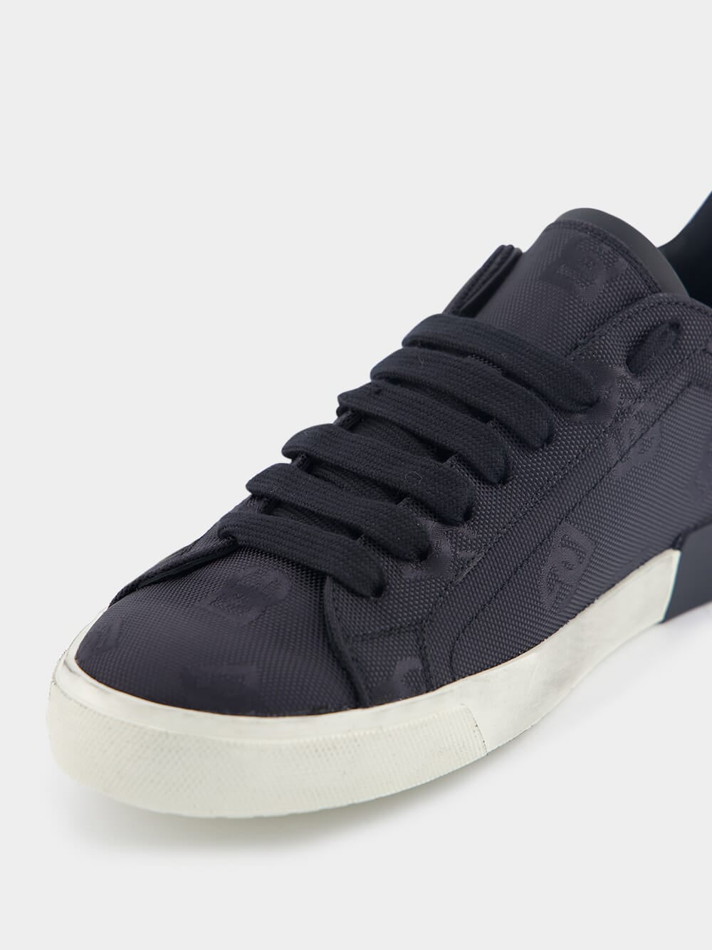 Portofino Canvas Sneakers, feature a jacquard logo motif, adding a touch of elegance and sophistication to your look. Embrace a classic design with a round toe and front lace-up fastening, ensuring a secure and trendy fit. The branded insole guarantees premium quality and comfort with every step you take. Complete your style with the flat rubber sole, providing both durability and fashion-forward flair.