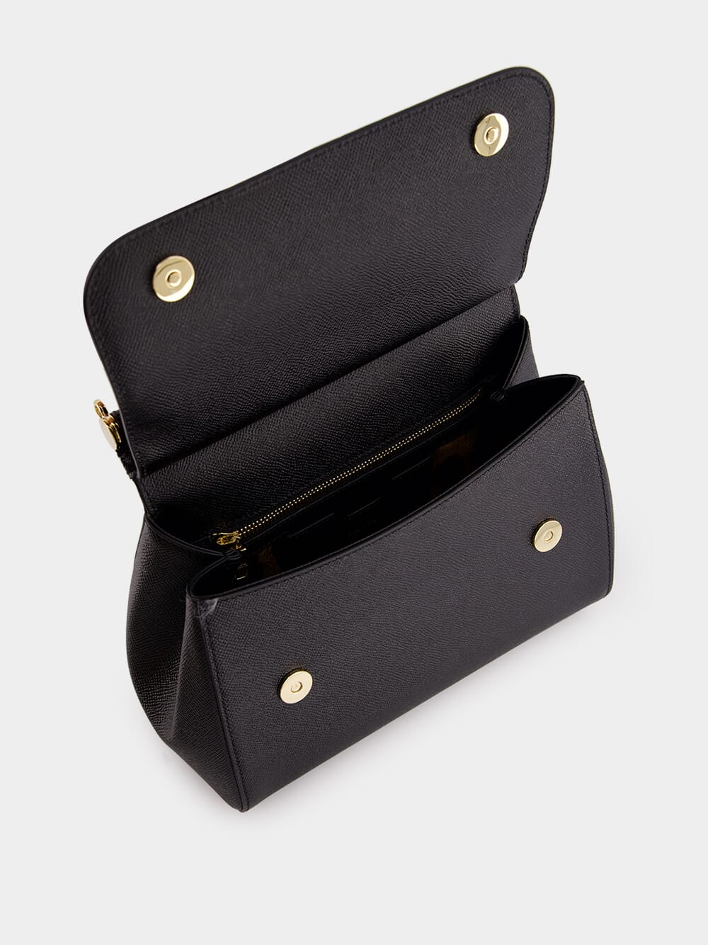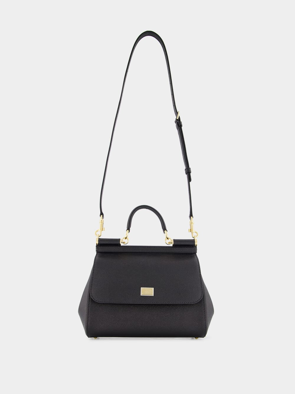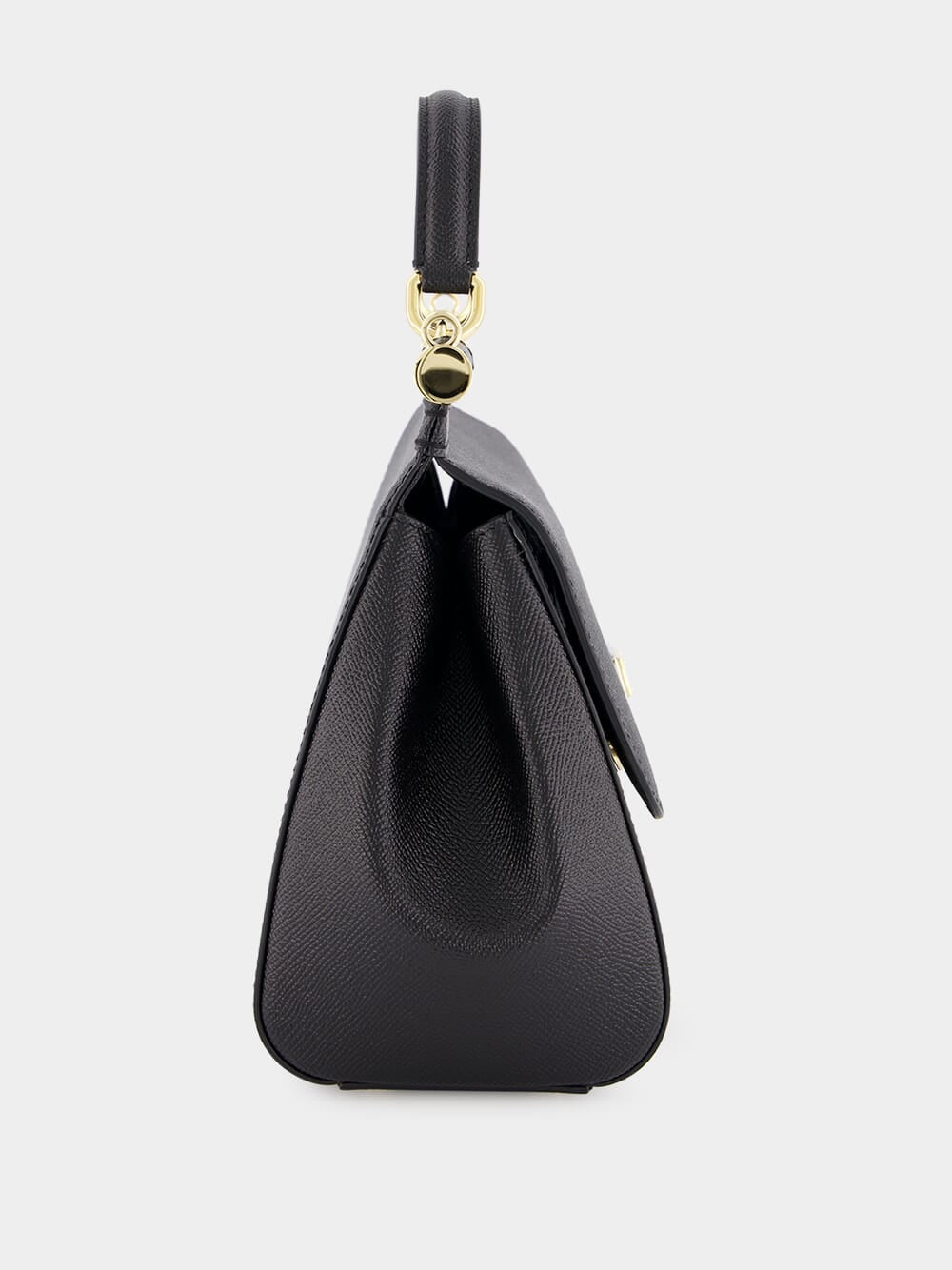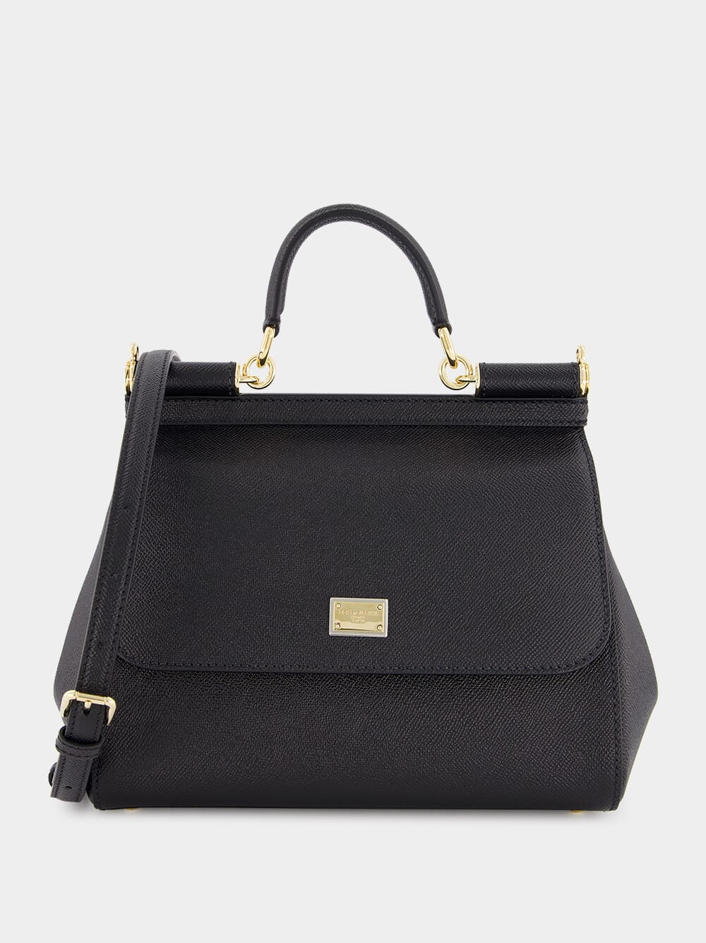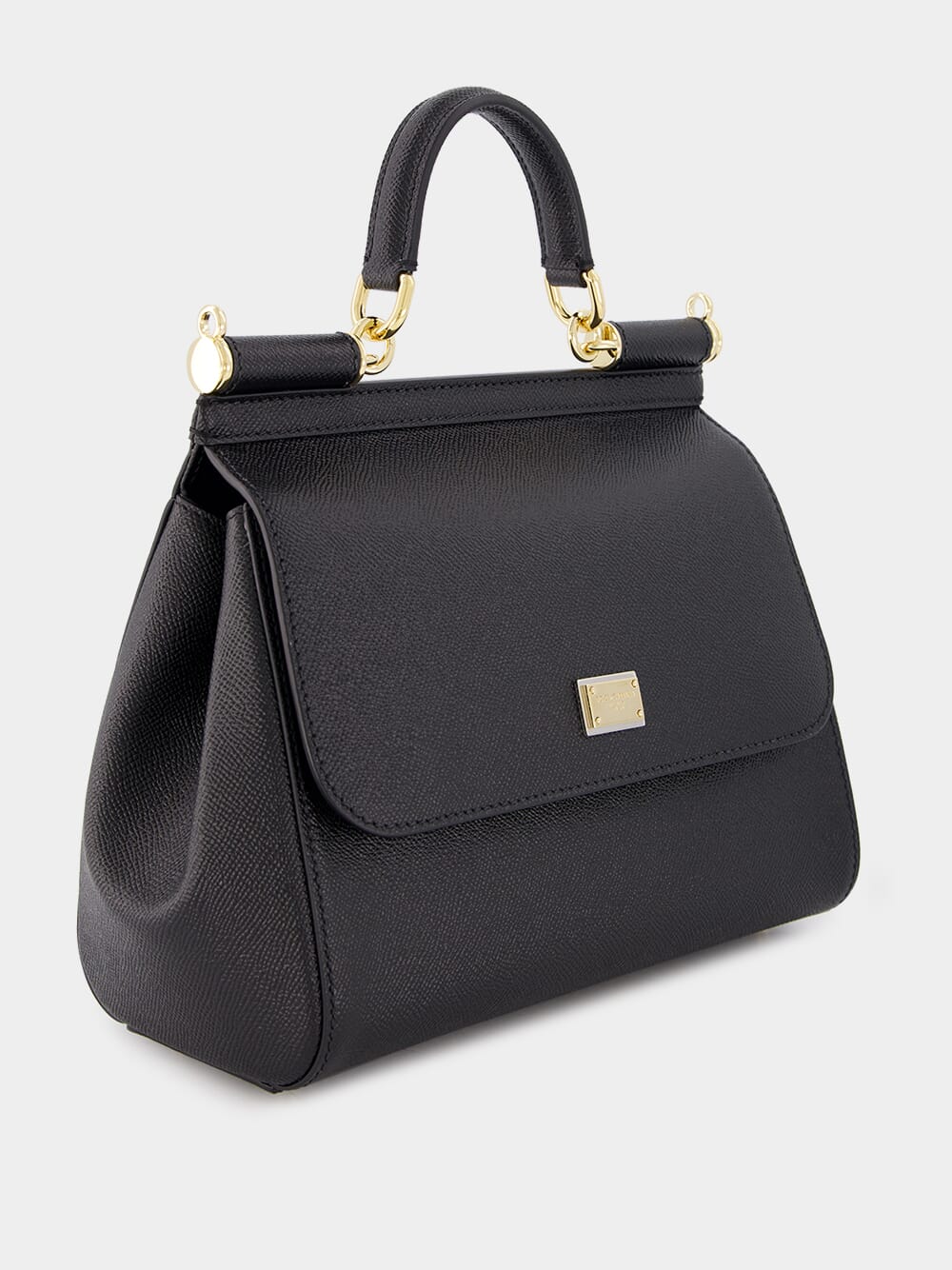 Doce & Gabbana black Dauphine leather medium handbag with top handle and the branded plate.