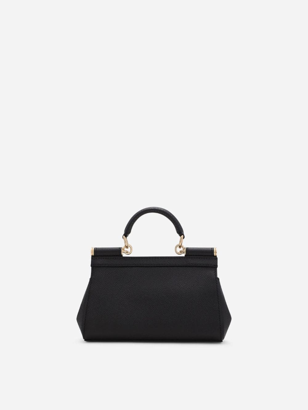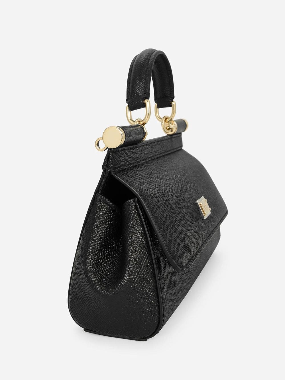 Doce & Gabbana Sicily black grained leather small handbag with top handle and branded plate.