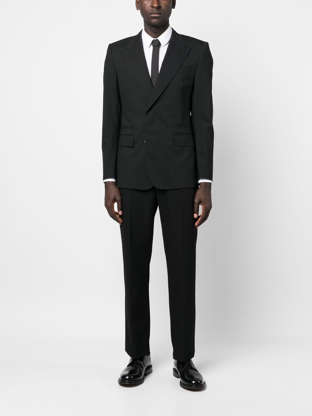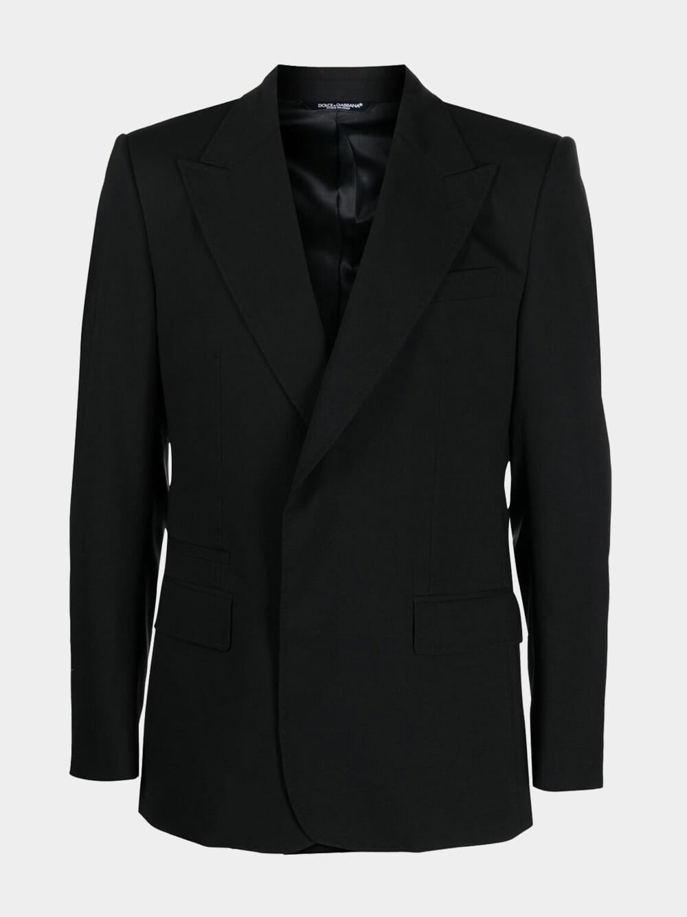 Dolce&Gabbana single-breasted blazer featuring black, virgin wool blend, silk, wide peak lapels, concealed front button fastening, long sleeves and two side flap pockets.