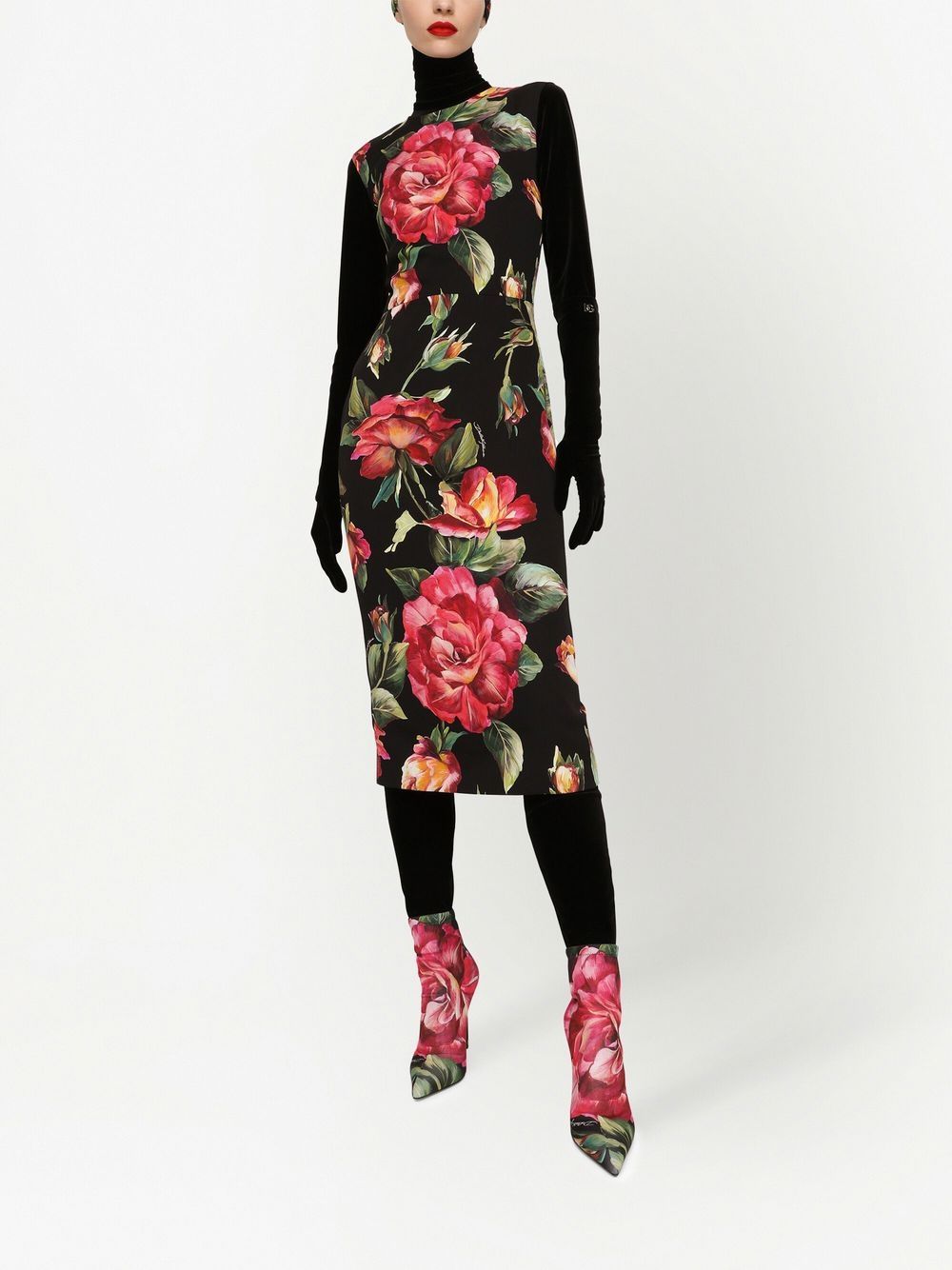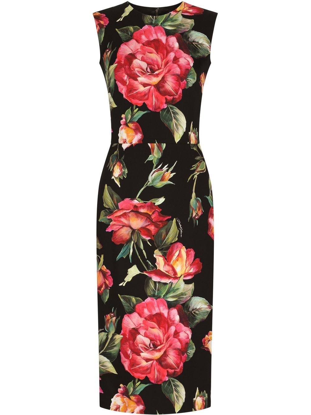 Dolce & Gabbana multicolour silk charmeuse sleeveless midi dress.